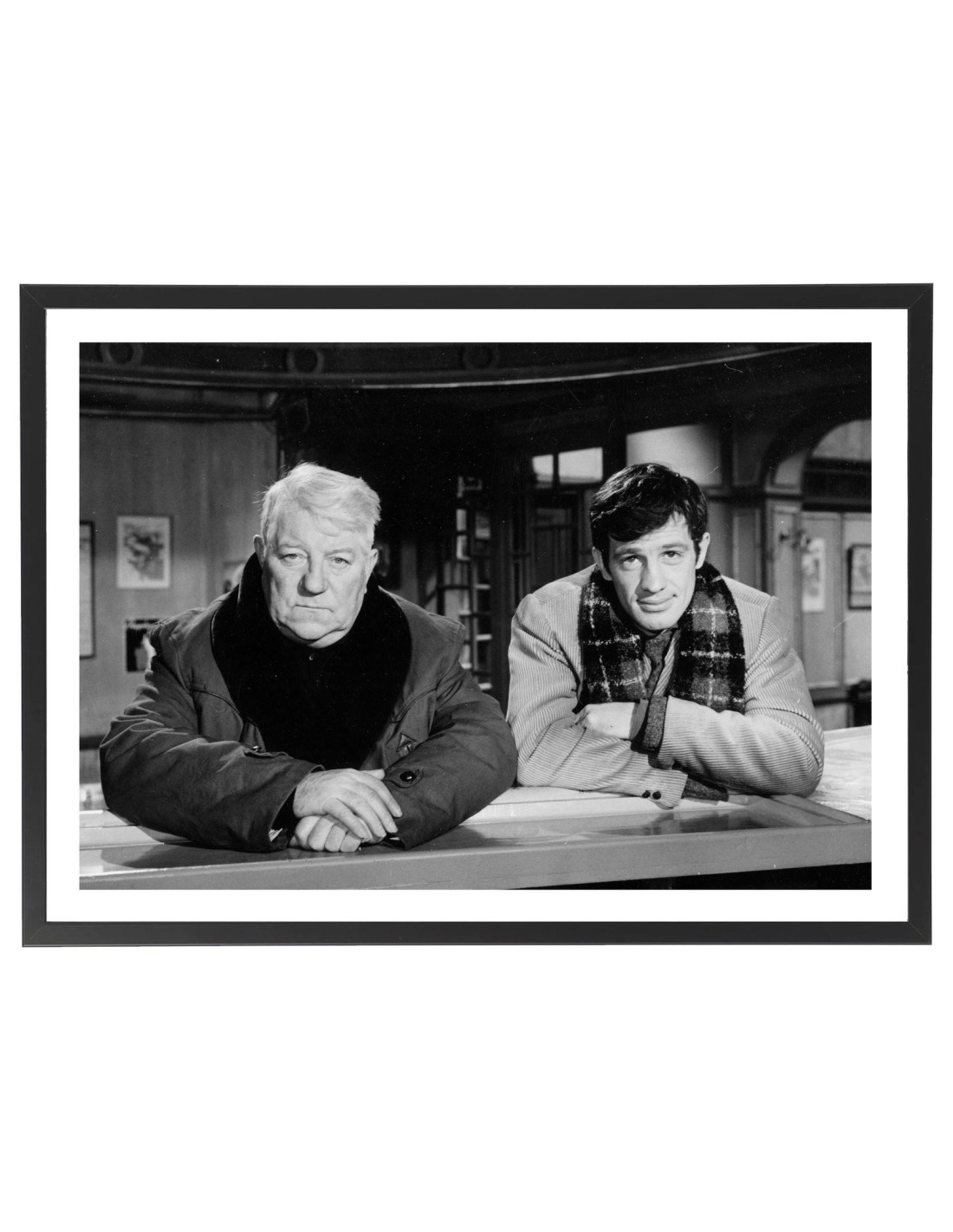 Tableau décoration noir et blanc de Jean Gabin et Jean-Paul Belmondo dans le film "Un singe en hiver" tourné en 1962.