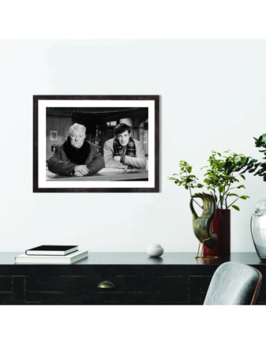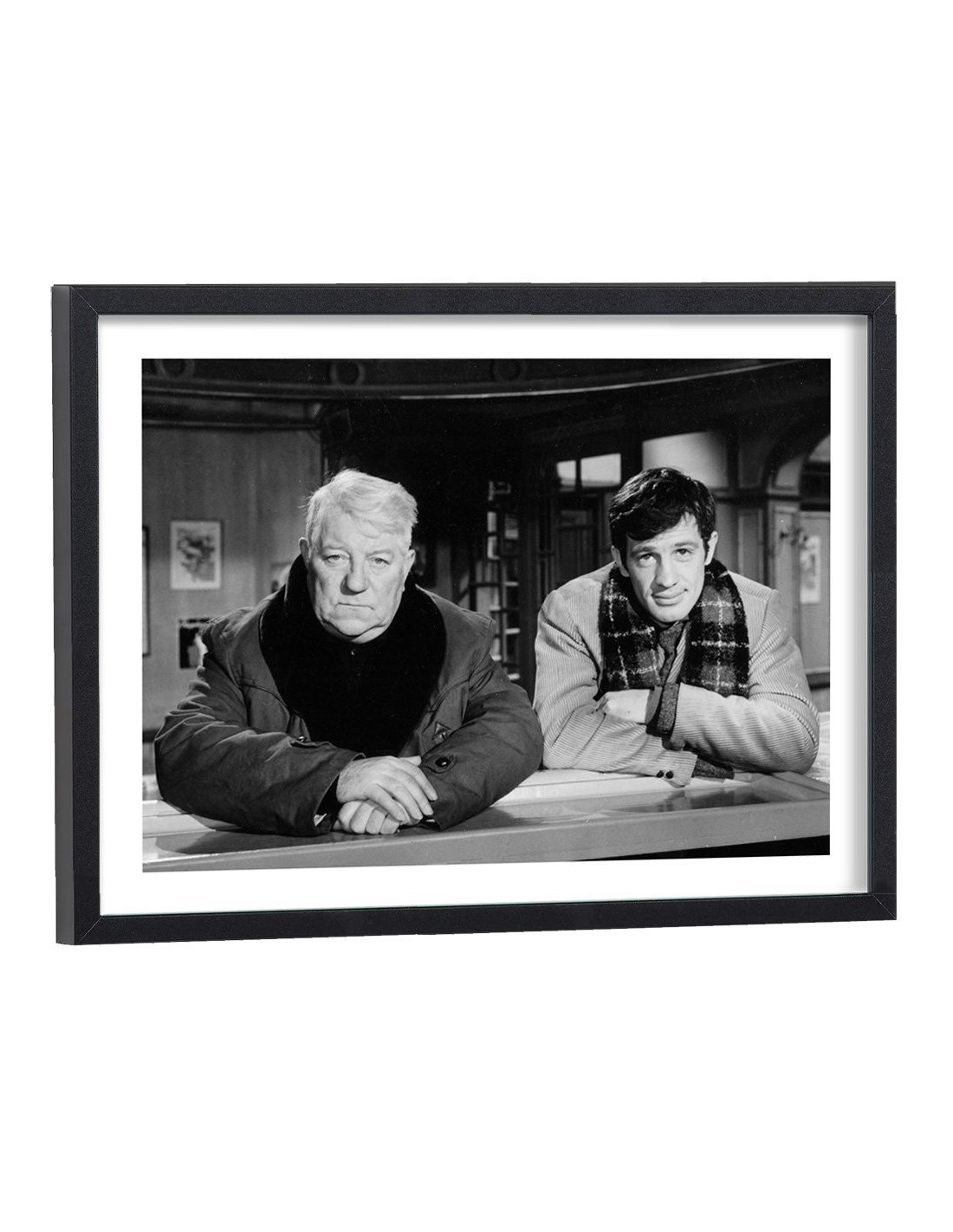 Tableau décoration noir et blanc de Jean Gabin et Jean-Paul Belmondo dans le film "Un singe en hiver" tourné en 1962.