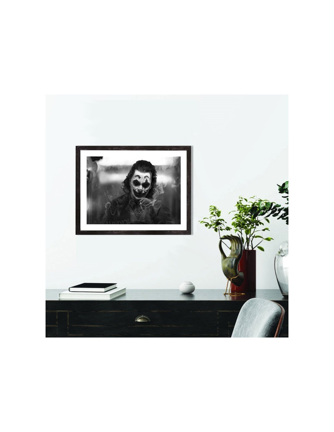 Le tableau noir et blanc de Joker trouvera facilement sa place dans votre maison et pourra parfaitement s'intégrer à une décoration cinéma moderne ou vintage. Vous pourrez par exemple l'accrocher dans un salon, dans un couloir ou dans un bureau. Il pourra être intéressant de l'intégrer dans une déco de plusieurs tableaux de cinéma en noir et blanc.