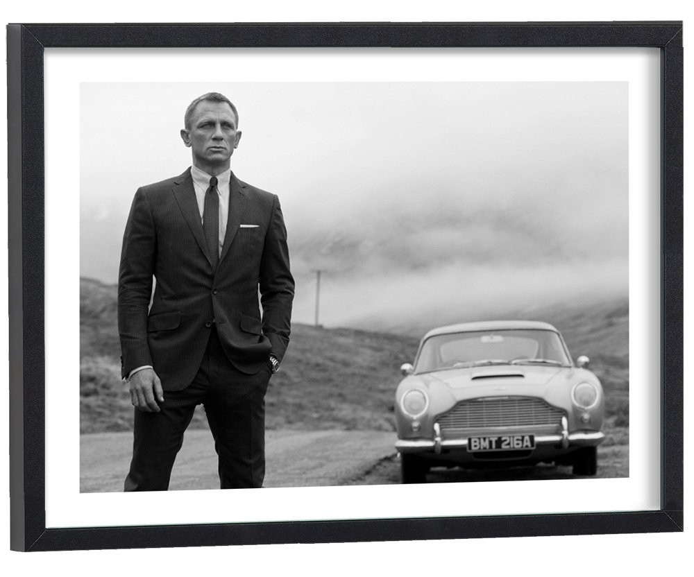 Tableau décoration vintage noir et blanc de Daniel Craig dans le film Skyfall (James Bond) sorti en 2012.