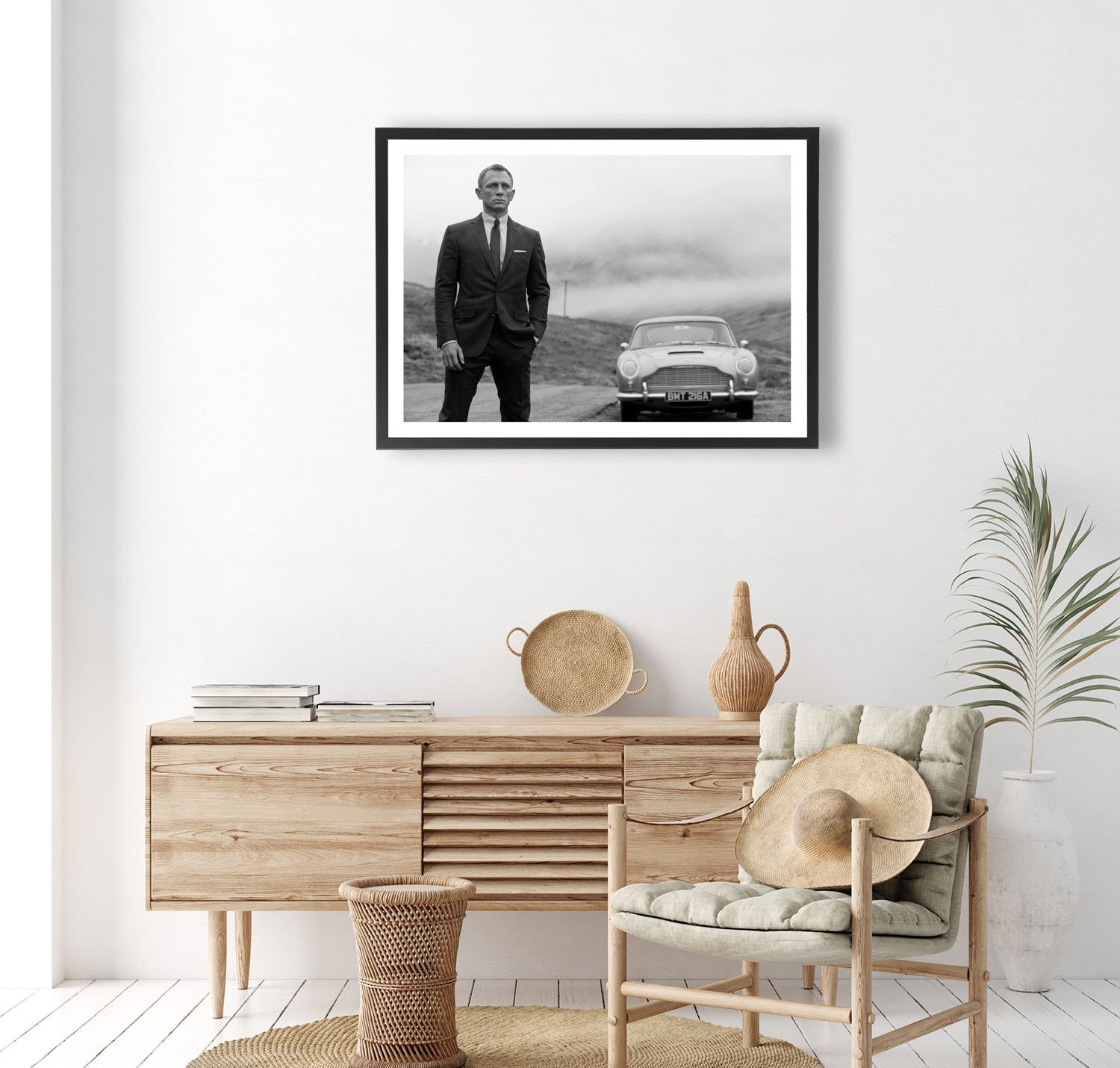 Tableau décoration vintage noir et blanc de Daniel Craig dans le film Skyfall (James Bond) sorti en 2012.