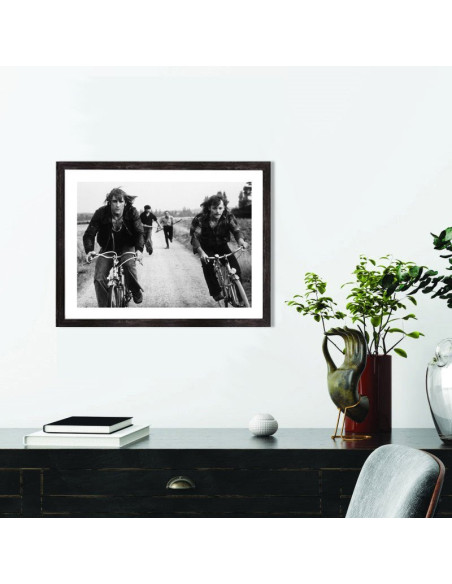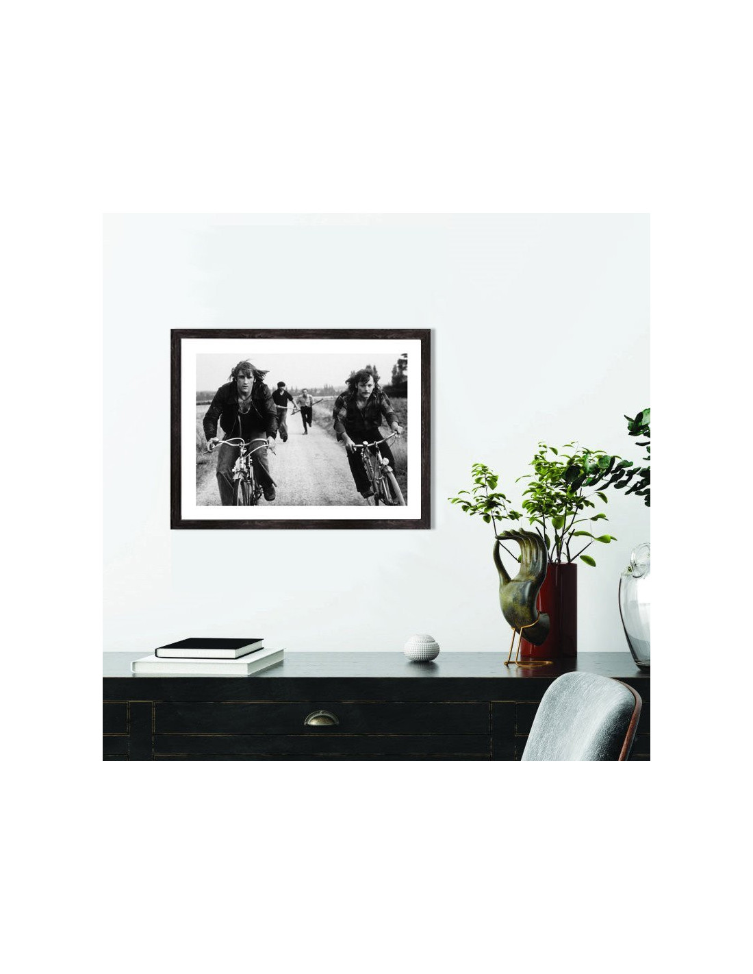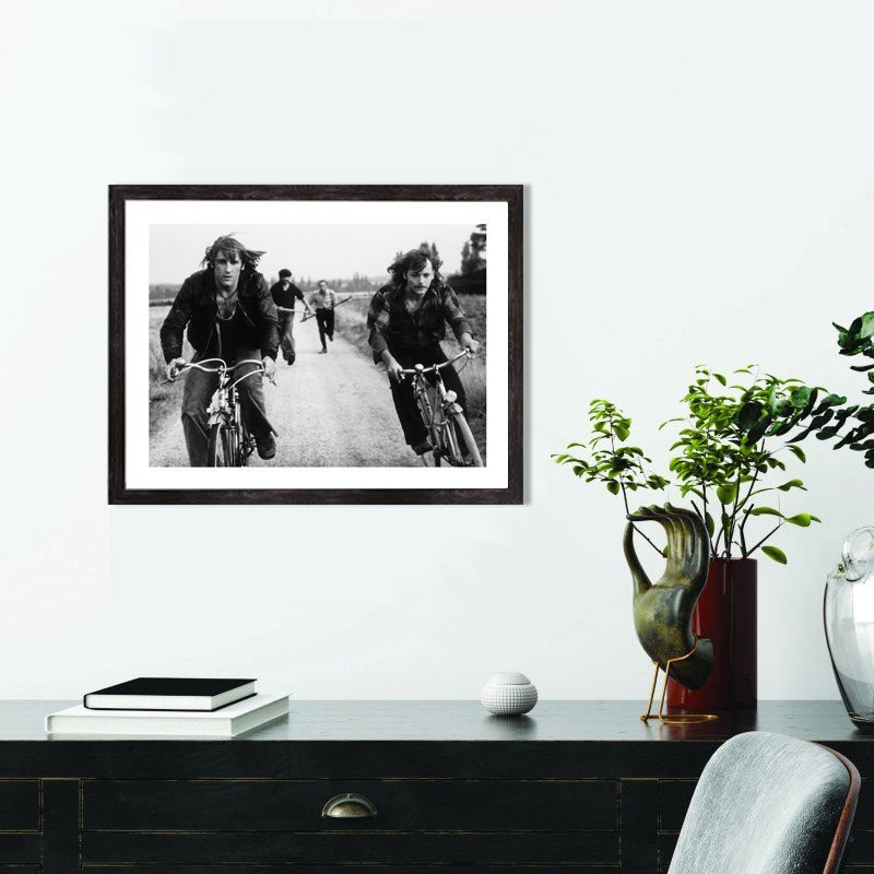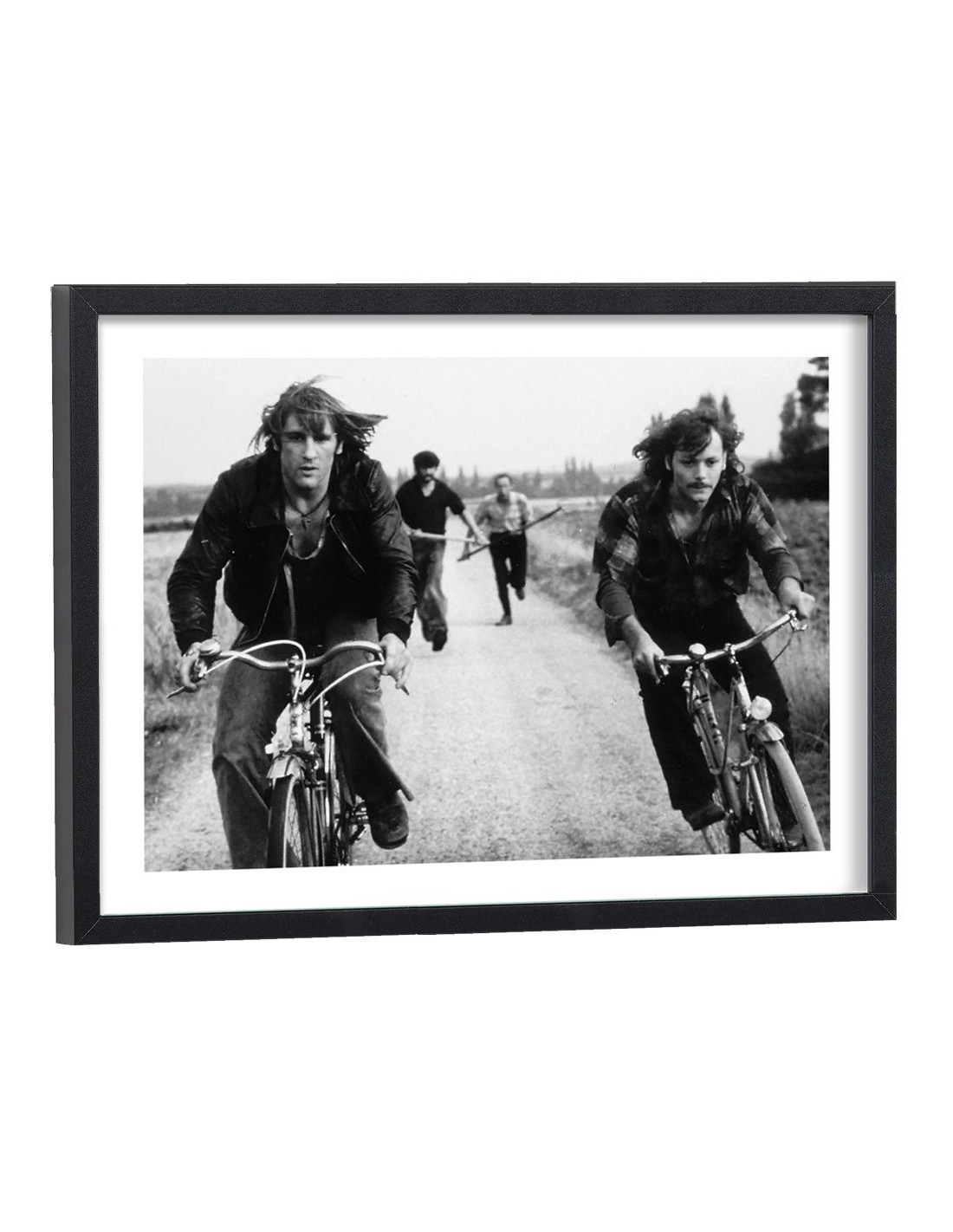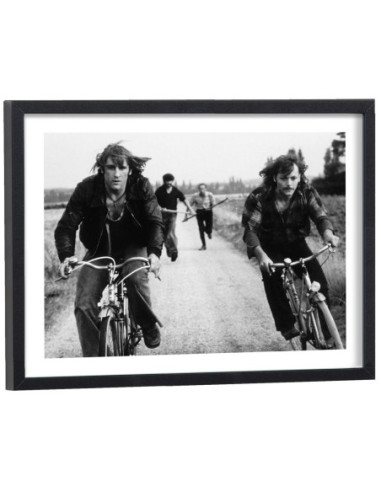 Tableau décoration vintage du film "Les valseuses" réalisé par Bertrand Blier en 1974. Scène avec Gérard Depardieu et Patrick Dewaere à vélo.