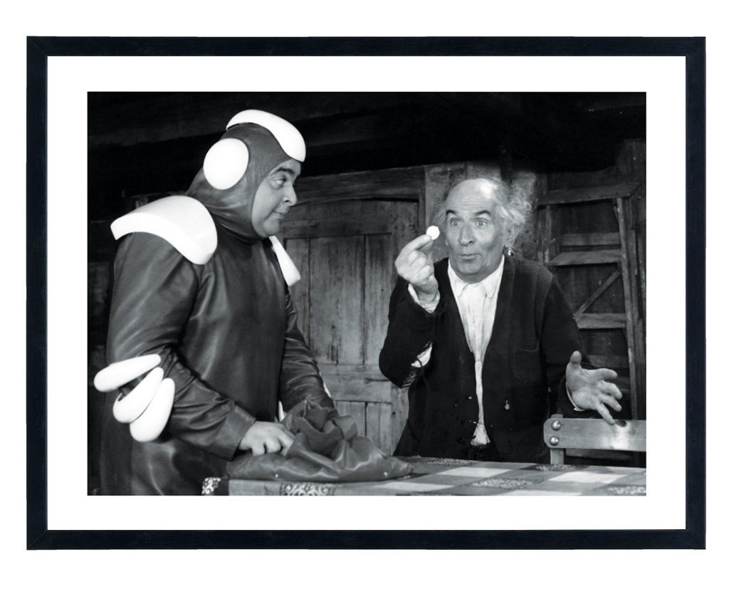 Tableau décoration vintage noir et blanc d'une scène du film "La soupe aux choux", avec Louis de Funès et Jacques Villeret. Le film "La soupe aux choux", réalisé par Jean Girault, est sorti au cinéma en 1981.