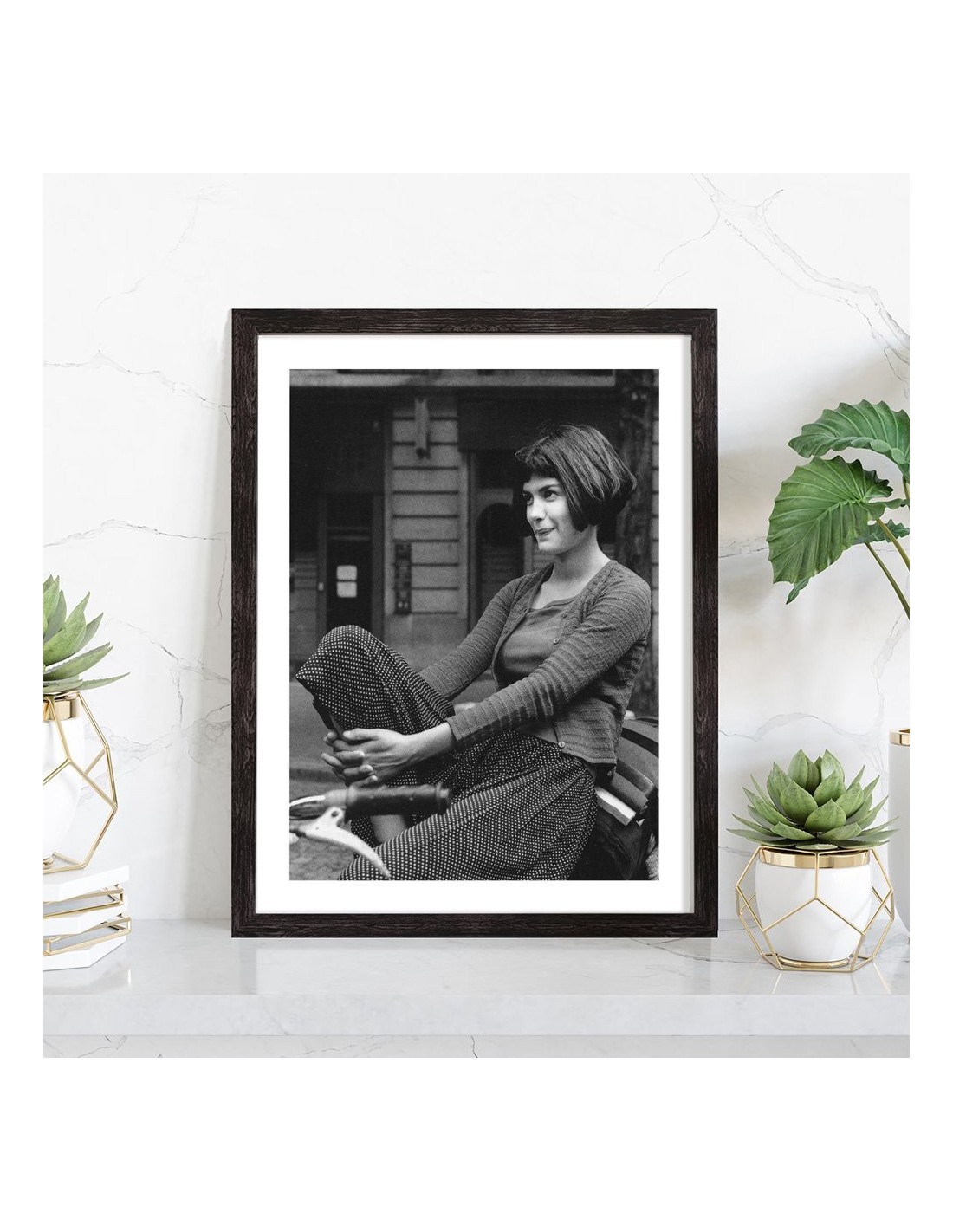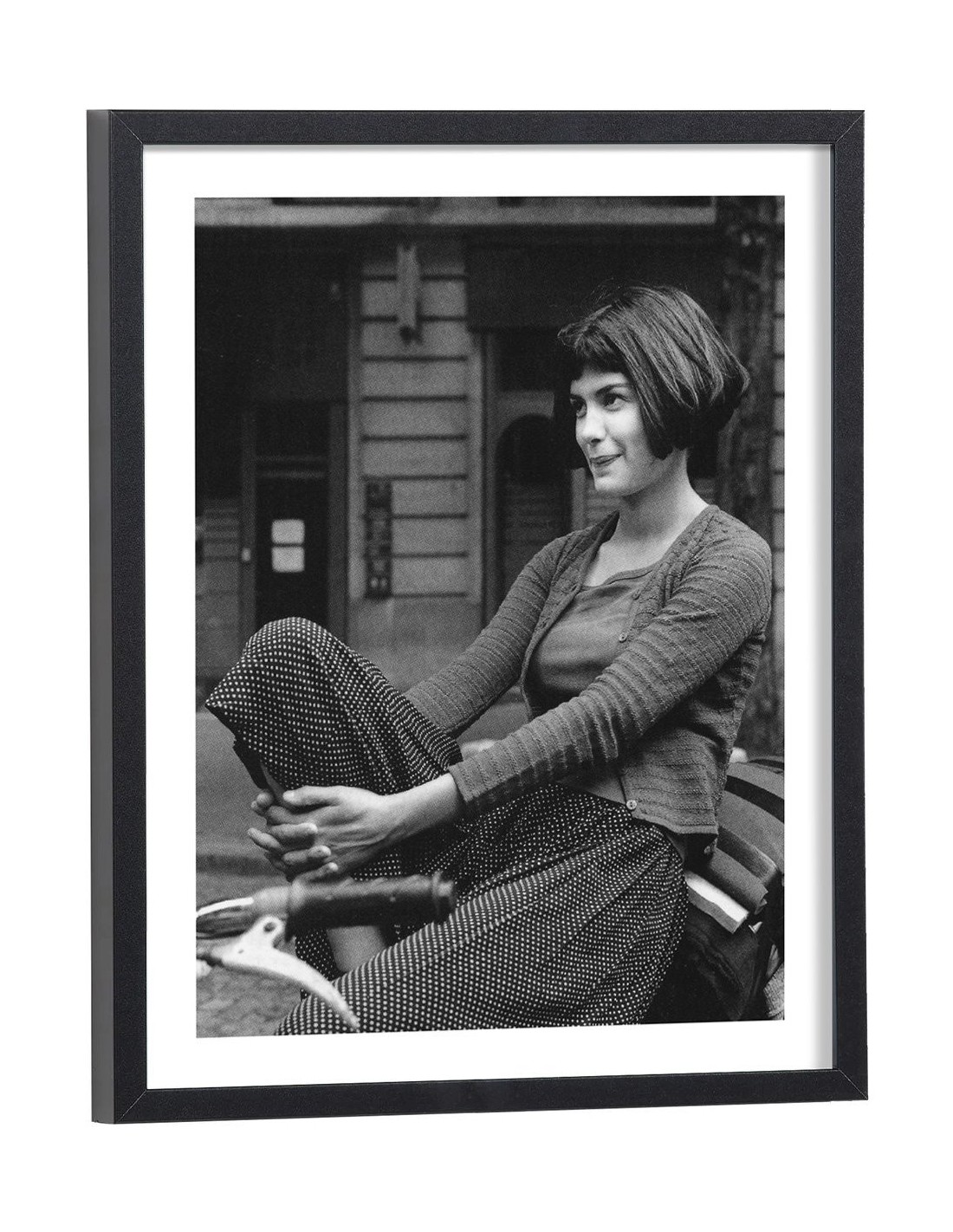 Tableau décoration noir et blanc du film de Audrey Tautou lors du tournage du film "Le fabuleux destin d'Amélie Poulain" réalisé par Jean-Pierre Jeunet et sorti en 2001 au cinema.