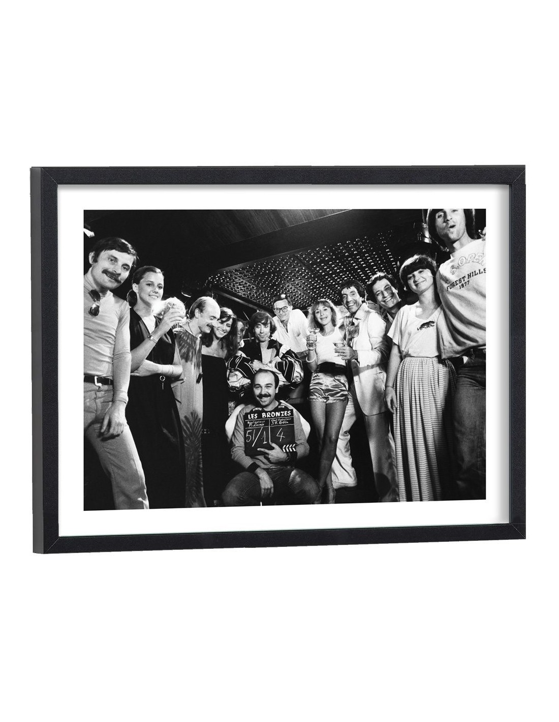 Tableau décoration cinéma noir et blanc de la troupe du splendid lors du tournage du film "Les bronzés", réalisé par Patrice Leconte et sorti au cinéma en 1978.