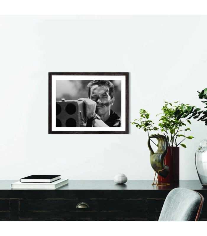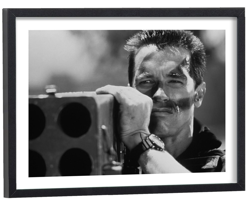 Tableau décoration cinéma d'une scène du film Commando avec Arnold Schwarzenegger.