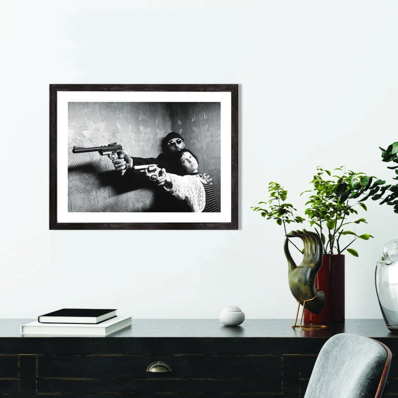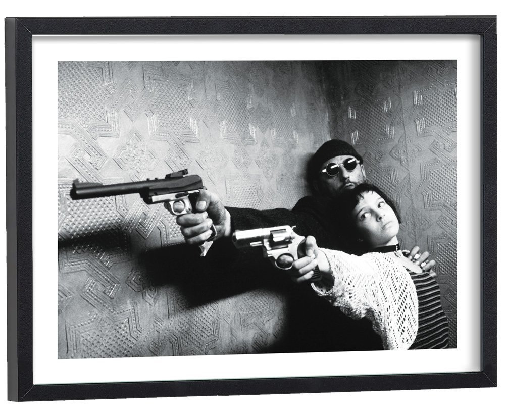 Tableau décoration noir et blanc du film "Léon" de Luc Besson, avec Jean Réno et Natalie Portman.