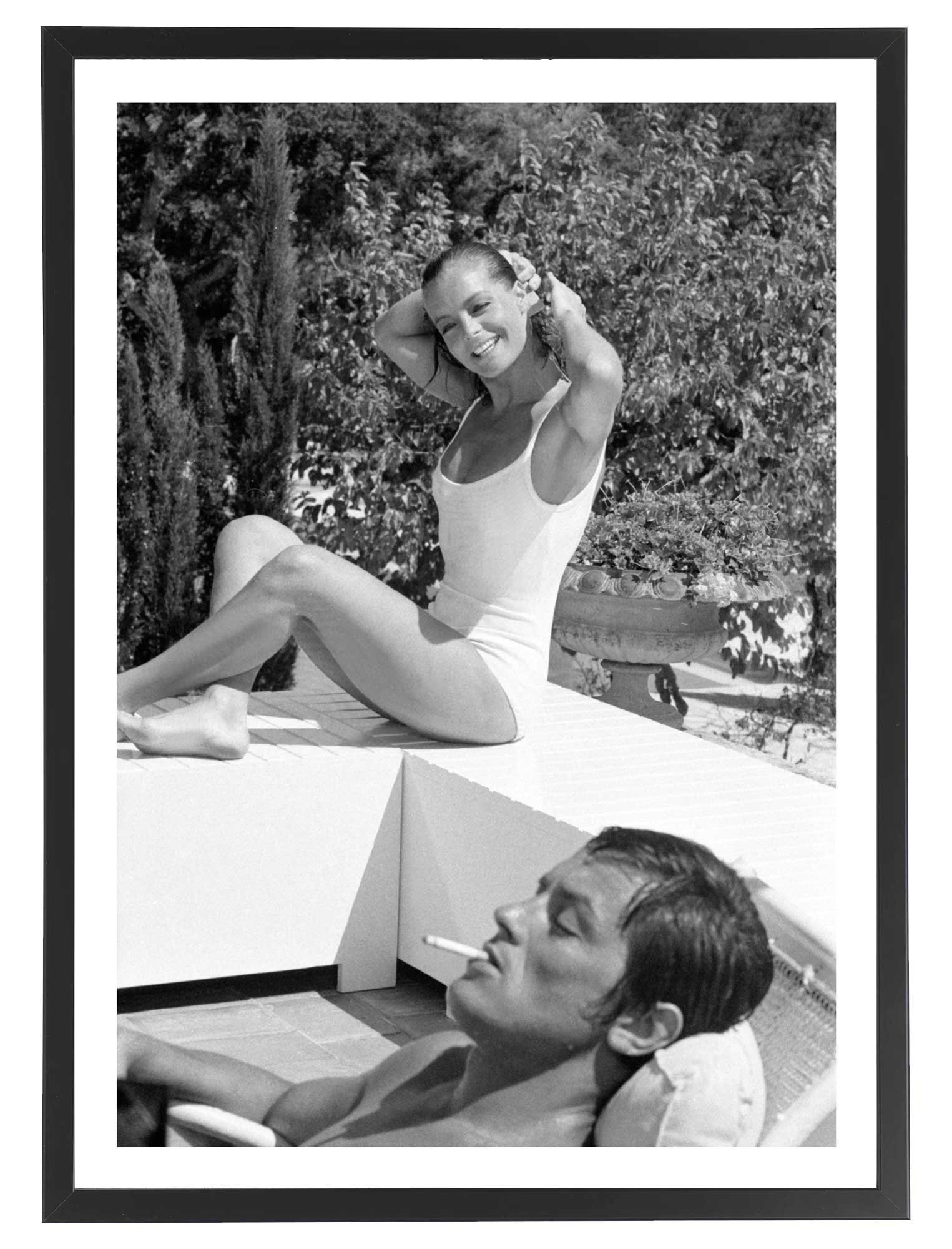 Tableau de Romy Schneider et Alain Delon dans le film "La piscine" réalisé en 1968 par Jacques Deray.