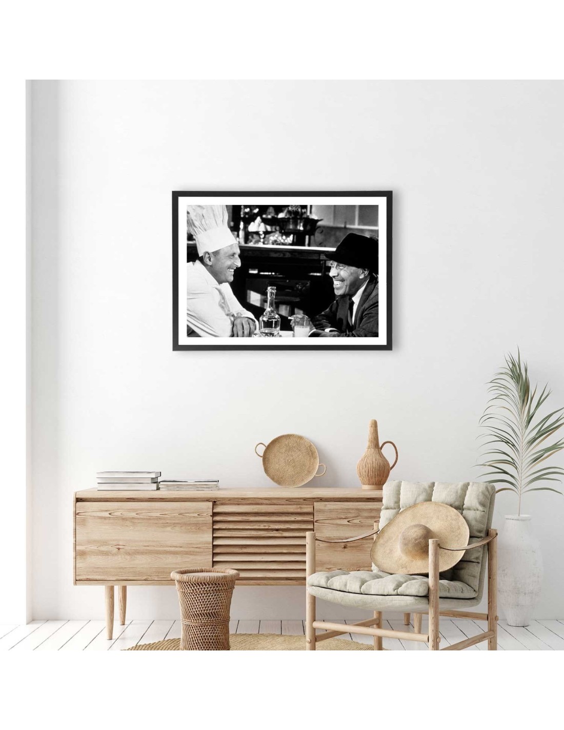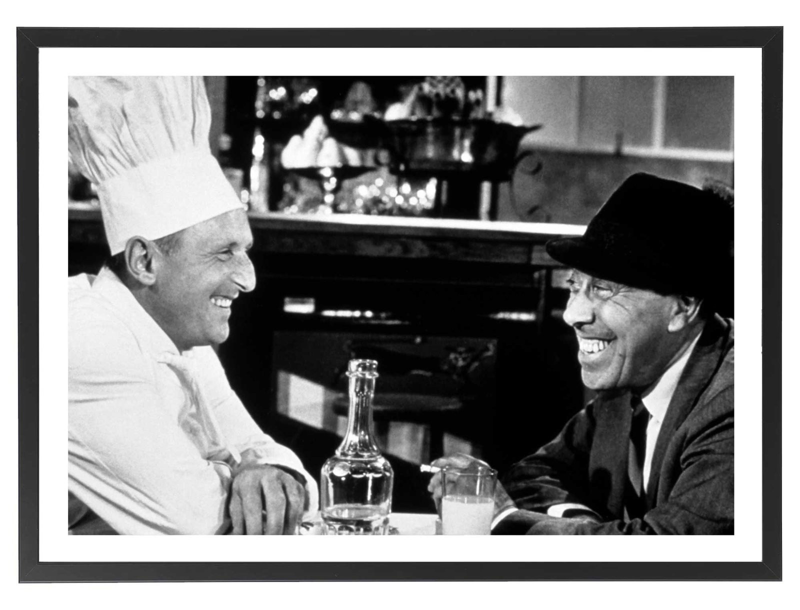 Tableau décoration de Fernandel et Bourvil dans "La Cuisine au beurre", un film franco-italien réalisé par Gilles Grangier et sorti en 1963.