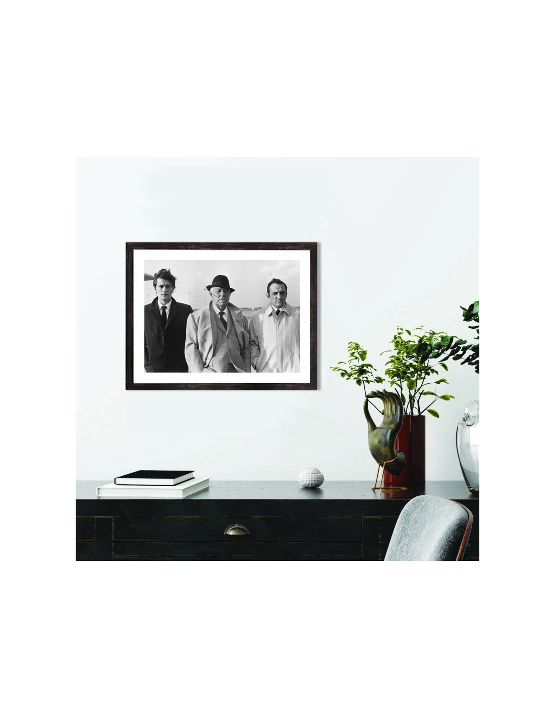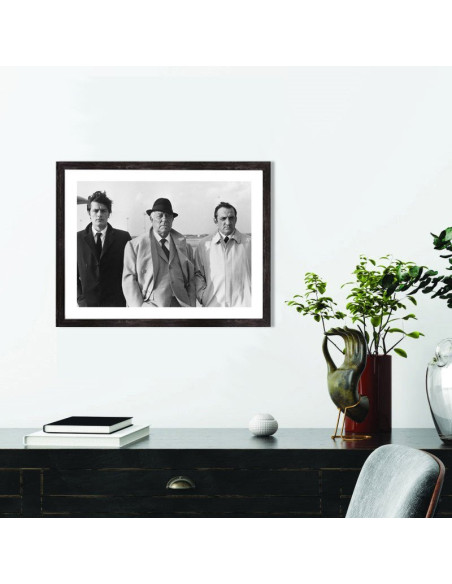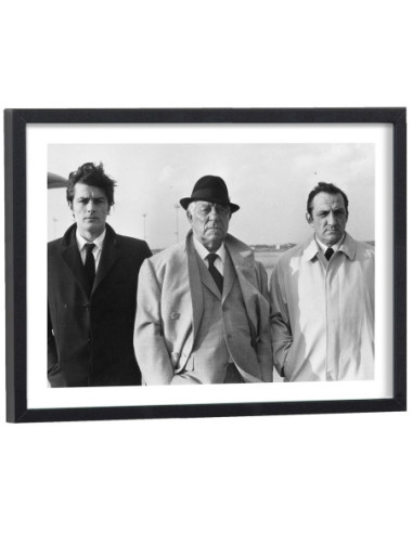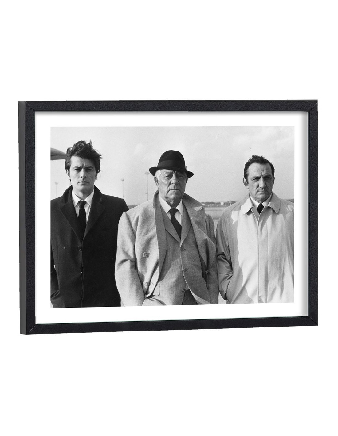 Le clan des siciliens est un film français policier réalisé par Henri Verneuil. Il est sorti en 1969. Dans ce film, Vittorio Malanese, le chef du clan des Siciliens, organise l'évasion de Roger Sartet, un truand, pour l'aider à réaliser un braquage. Le rôle de Vittorio Malanese est joué par l'acteur Jean Gabin, tandis que Roger Sartet est joué par Alain Delon. Le commissaire de police est joué par Lino Ventura. Sur cette affiche du clan des siciliens, on voit Jean Gabin, Alain Delon et Lino Ventura à l'aéroport. Ce poster est vendu encadré avec le choix de la couleur du cadre. C'est un tableau qui ravira les fans de cinéma français.