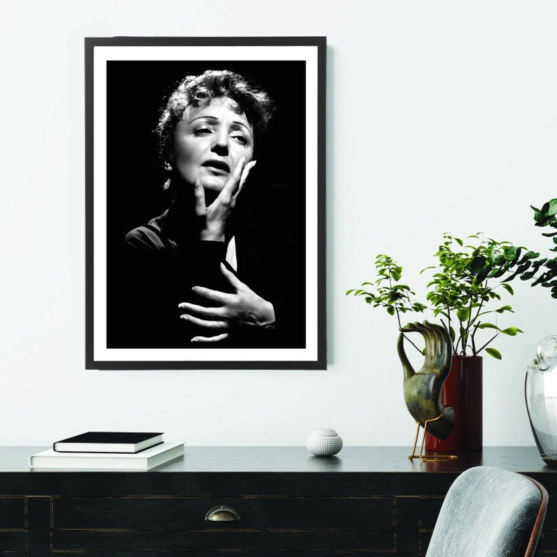 Tableau décoration noir et blanc de la chanteuse Edith Piaf.
