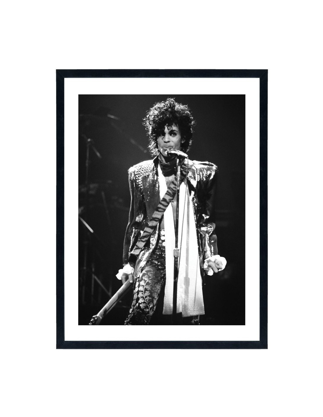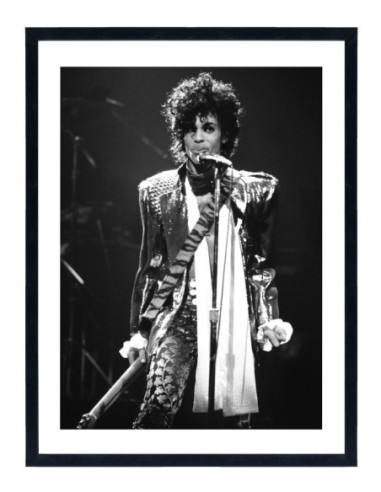 Tableau de décoration vintage noir et blanc de chanteur Prince lors d'un concert.