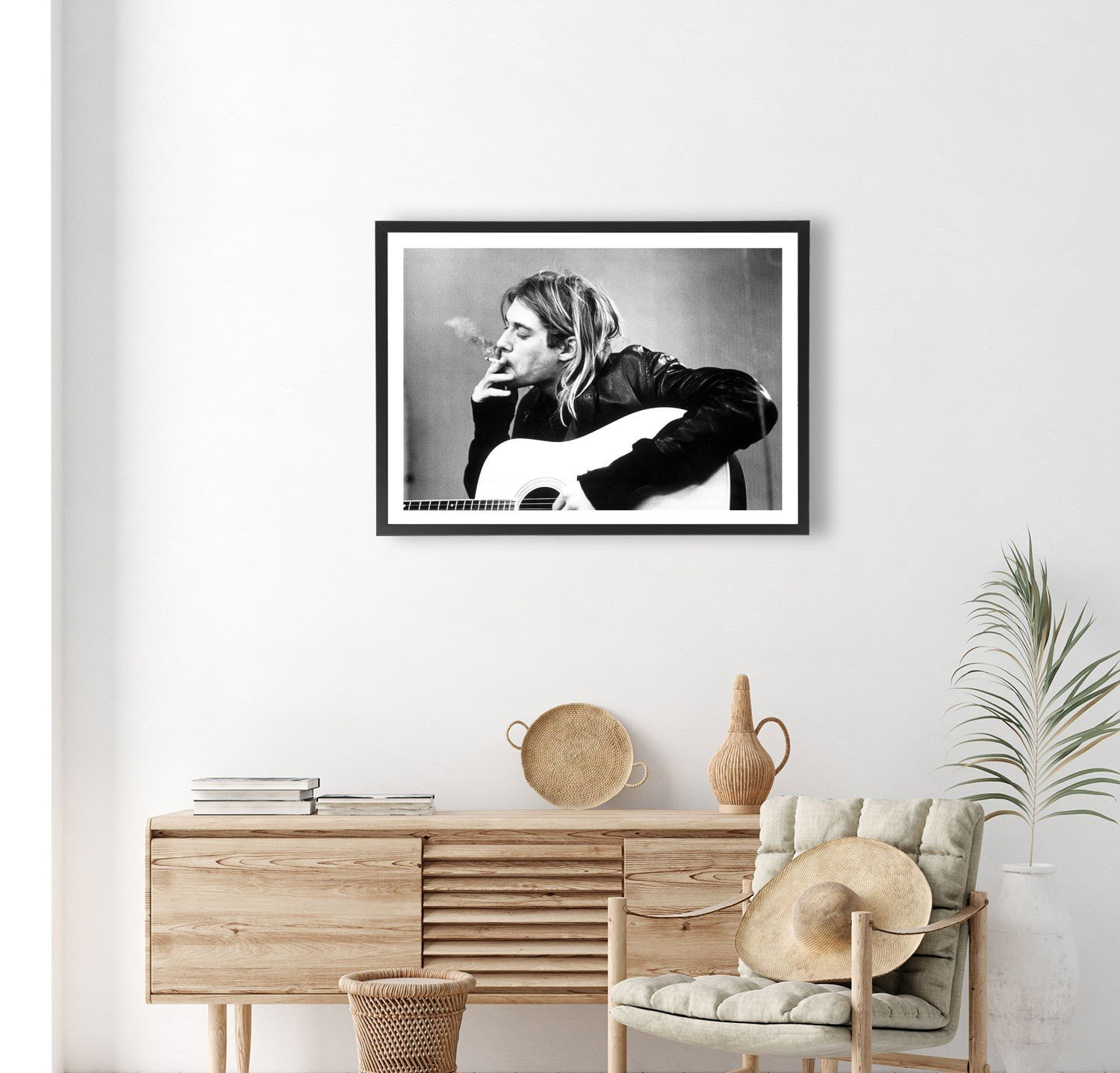 Affiche décoration noir et blanc de Kurt Cobain, chanteur de Nirvana.