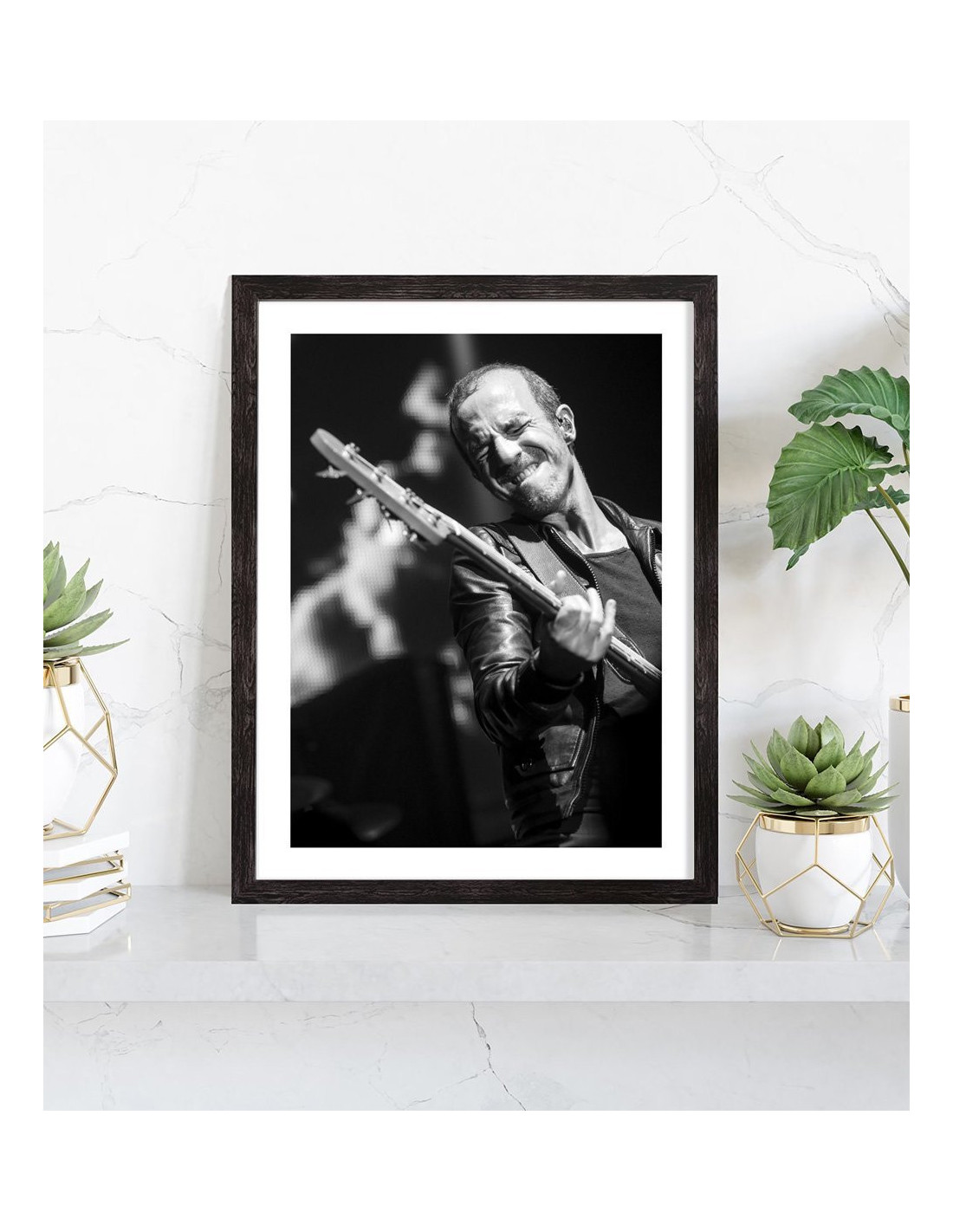 Tableau décoration noir et blanc de Calogero lors d'un concert.
