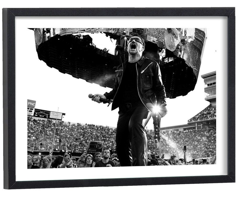 Affichez dans votre intérieur un des plus grands groupes de rock de tous les temps : U2 ! La photographie sur l'affiche a été prise lord d'un grand concert du groupe le 26 juin 2011 au Spartan Stadium dans le Michigan à l'occasion du U2 360 tour. On y voit le chanteur Bono avec ses lunettes de soleil en train de chanter sous un décor de concert grandiose.