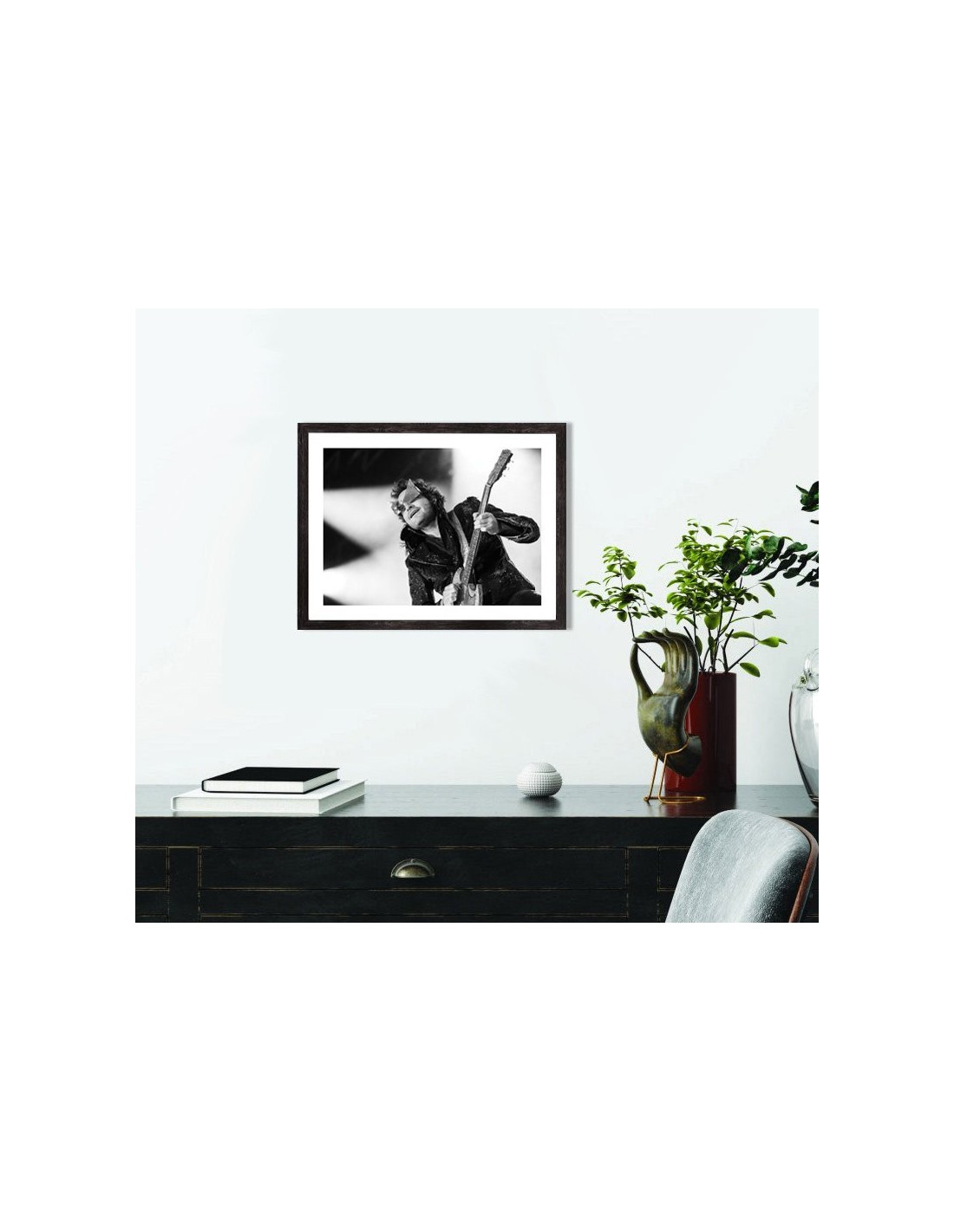 Tableau décoration musique noir et blanc du chanteur français Matthieu Chedid, plus connu sous le nom de M lors d'un concert.
