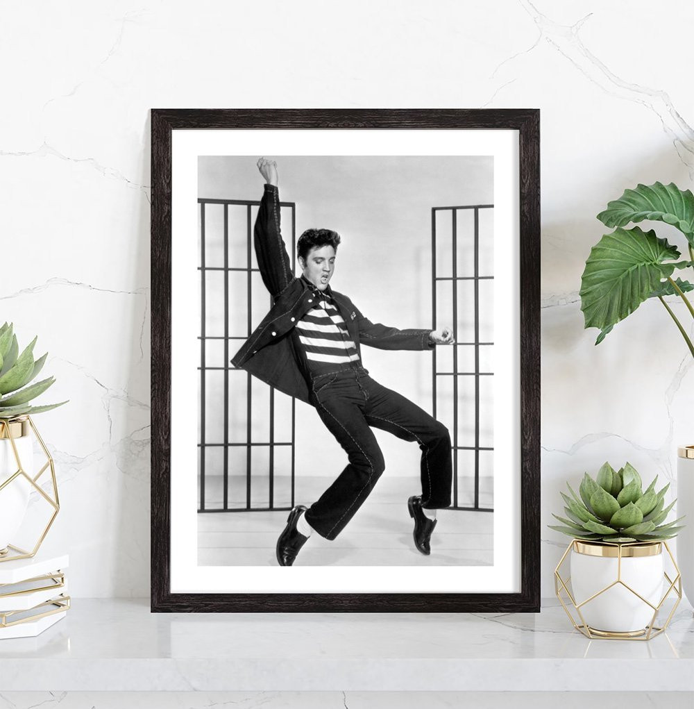 Tableau décoration musique noir et blanc de la légende du Rock n Roll Elvis Presley.