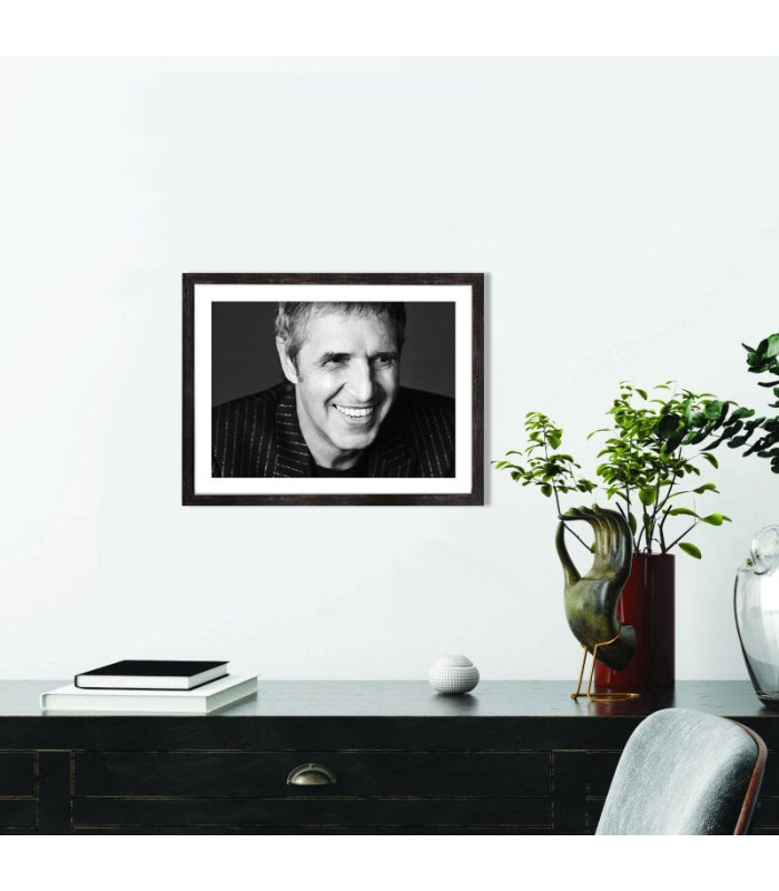 Tableau décoration du chanteur Julien Clerc en noir et blanc.