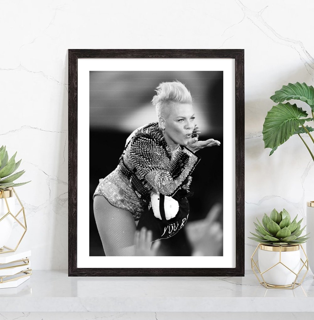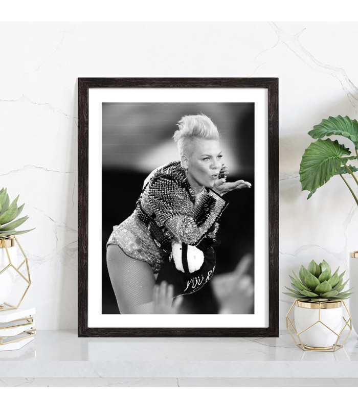 Tableau décoration musique noir et blanc de la chanteuse Pink lors d'un concert.