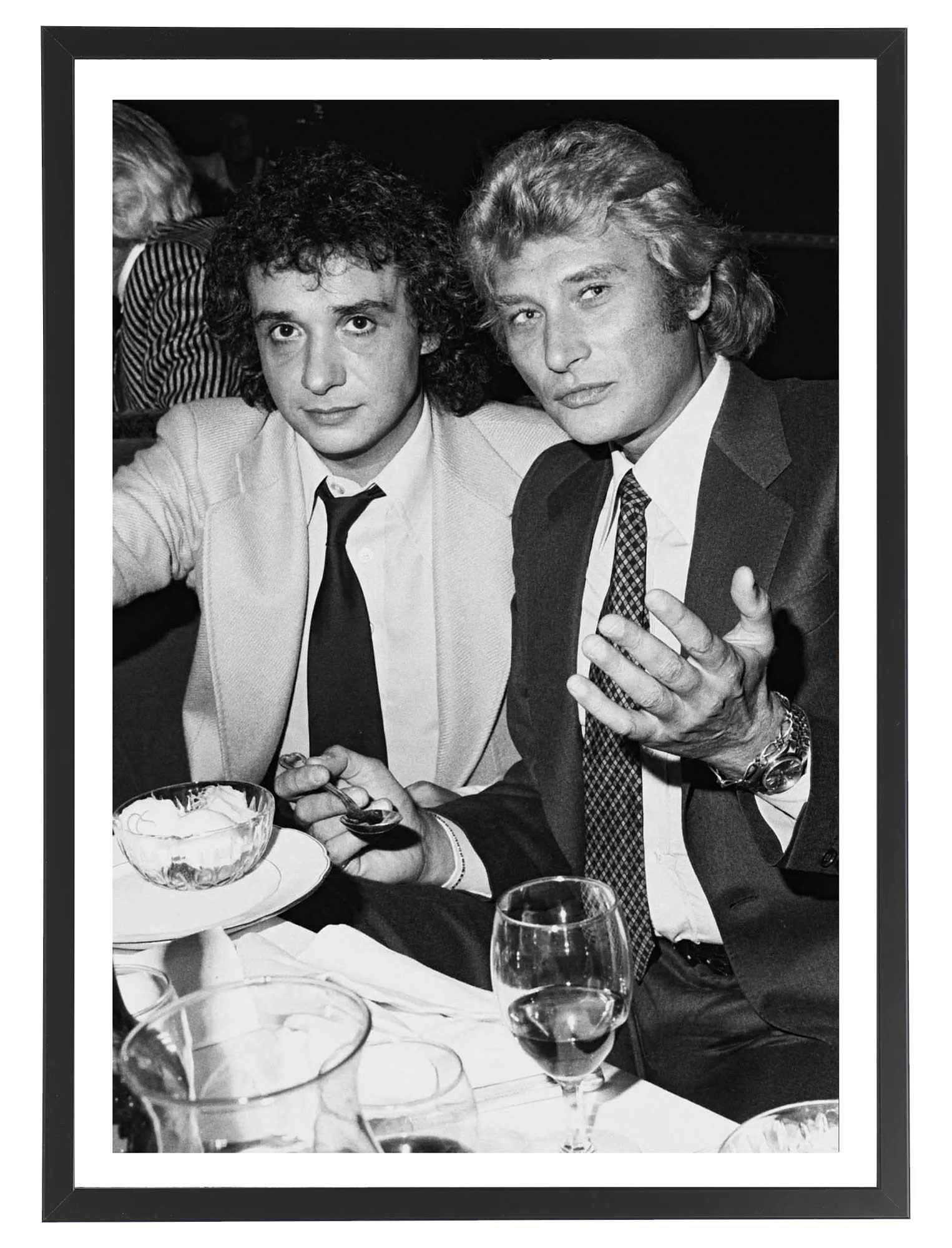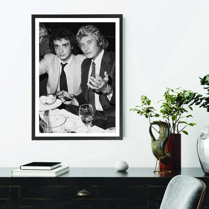 Tableau décoration noir et blanc de Johnny Hallyday et Michel Sardou.