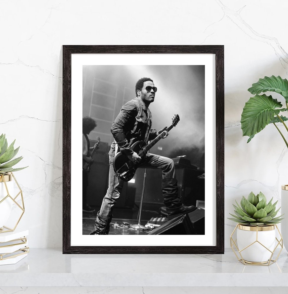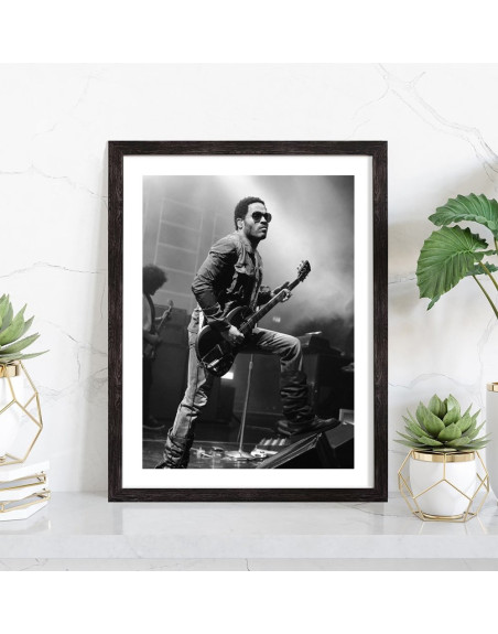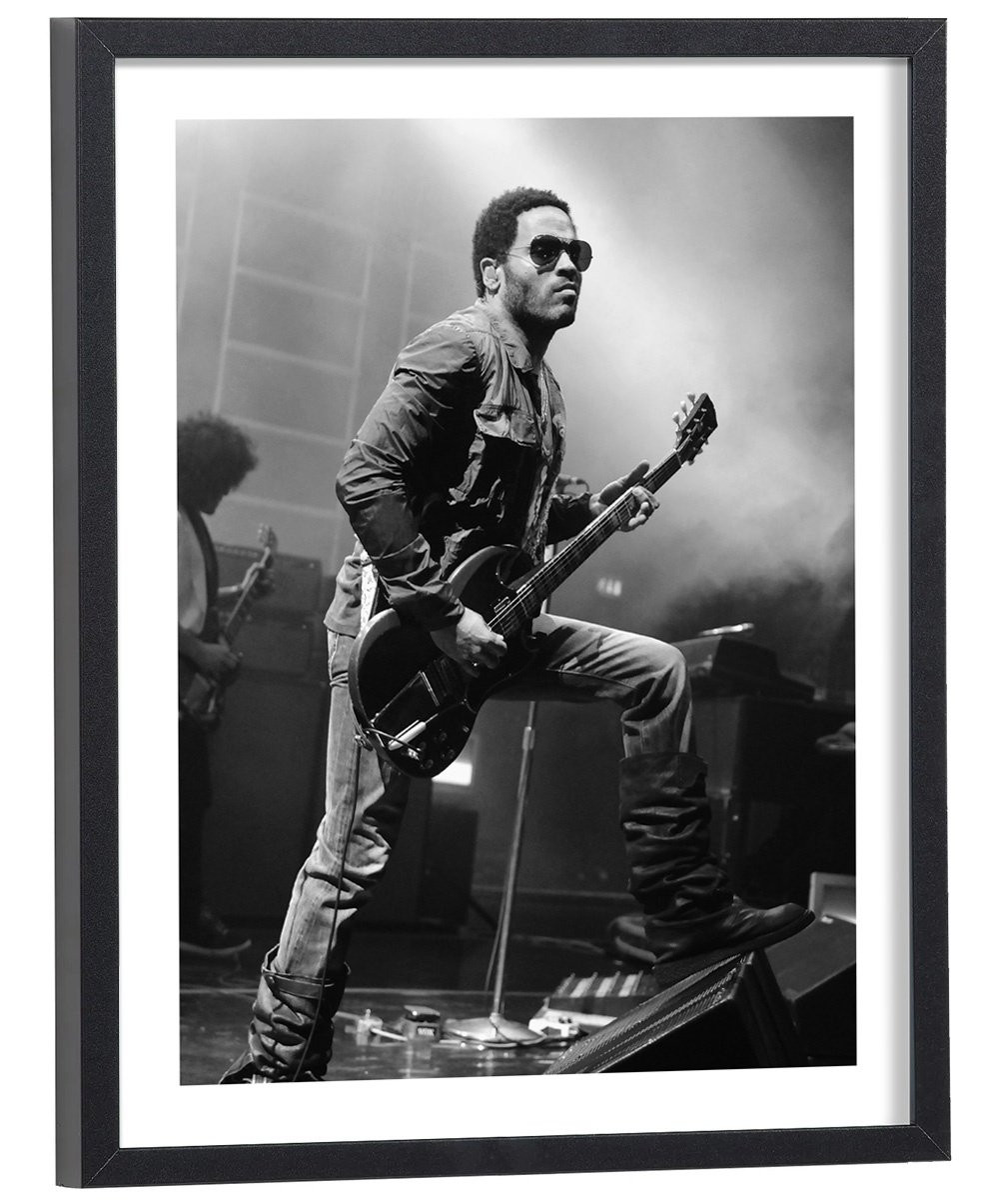 Tableau décoration vintage de Lenny Kravitz à la guitare lors d'un concert.