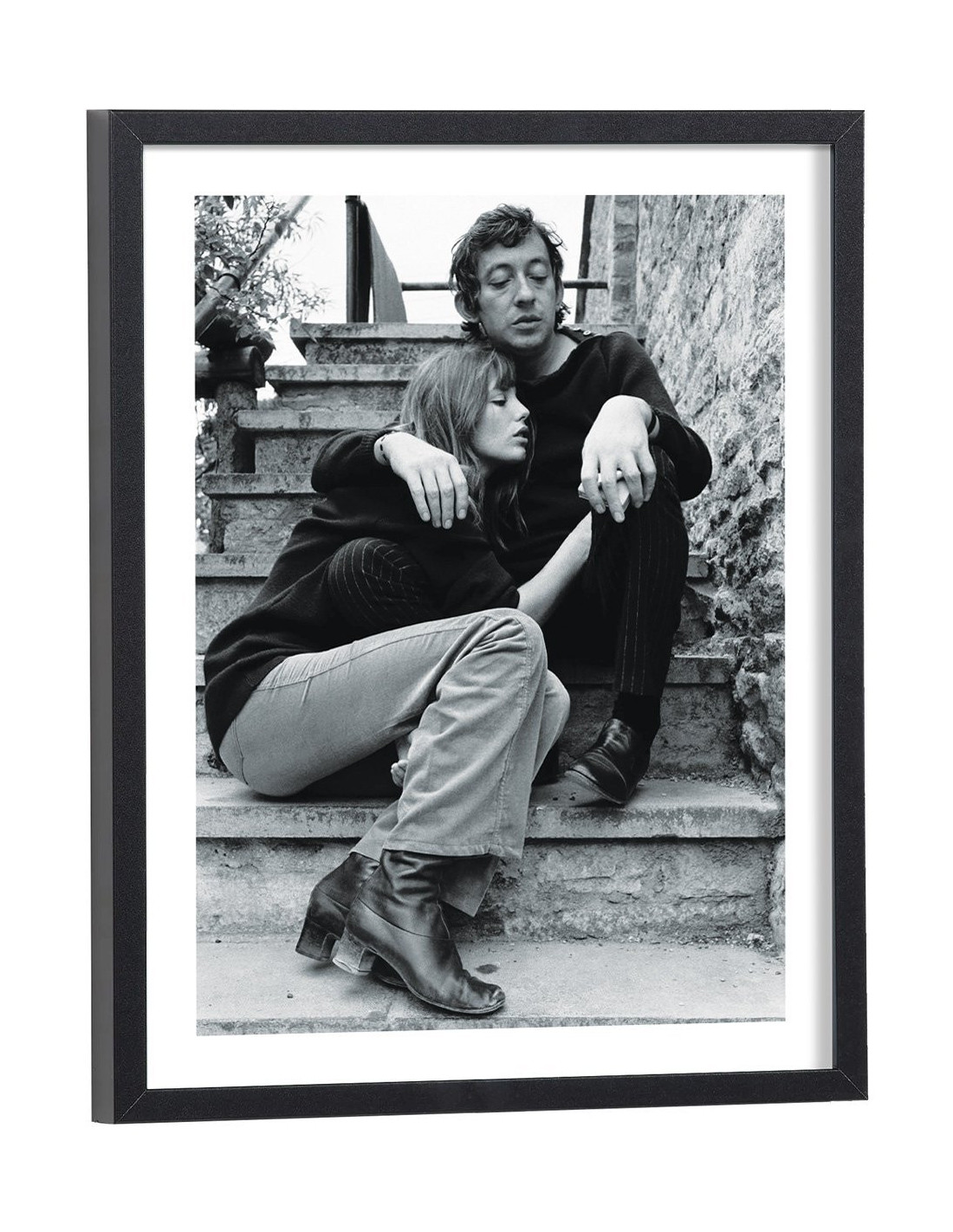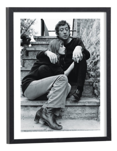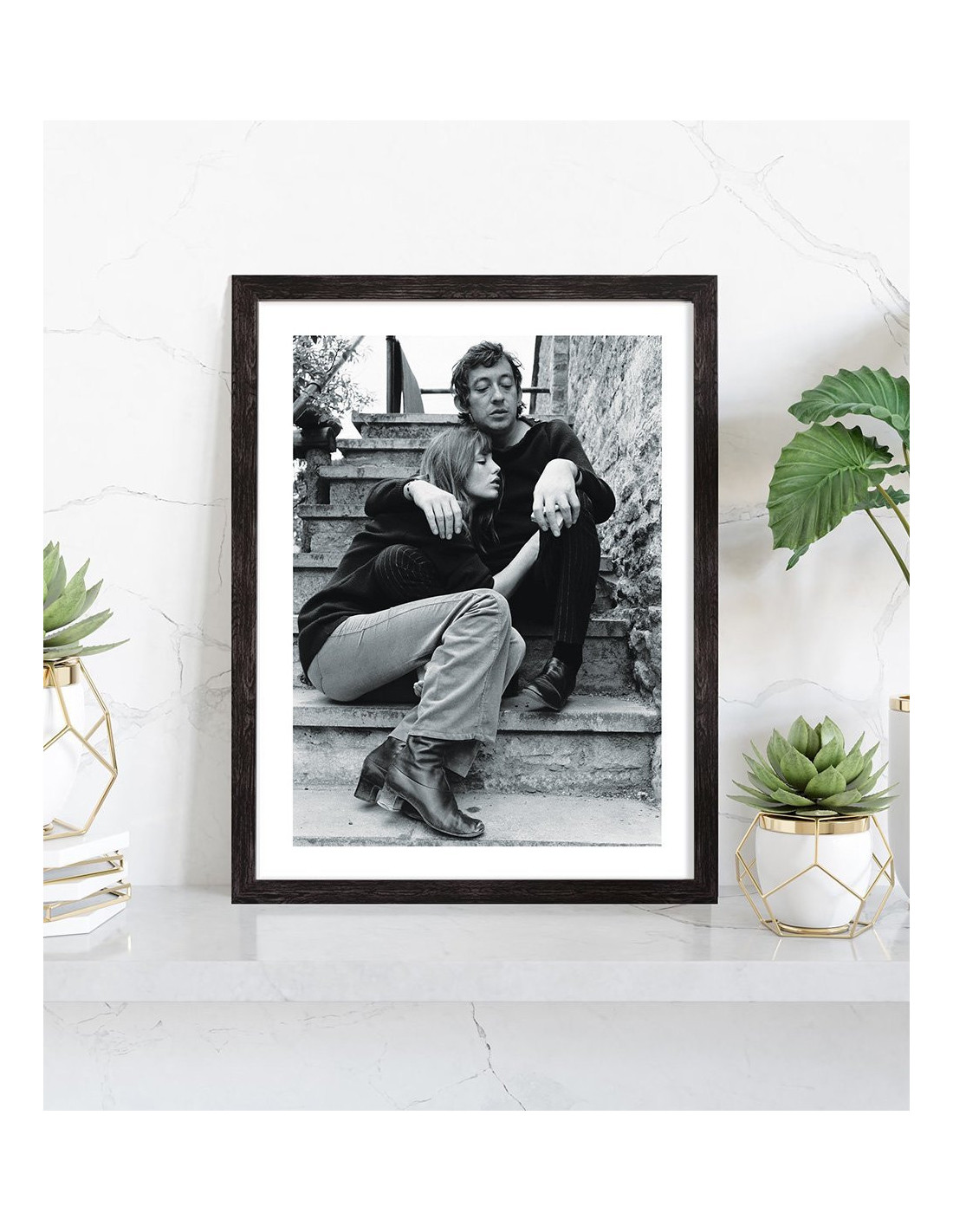 Tableau décoration de Serge Gainsbourg et Jane Birkin assis sur un escalier.