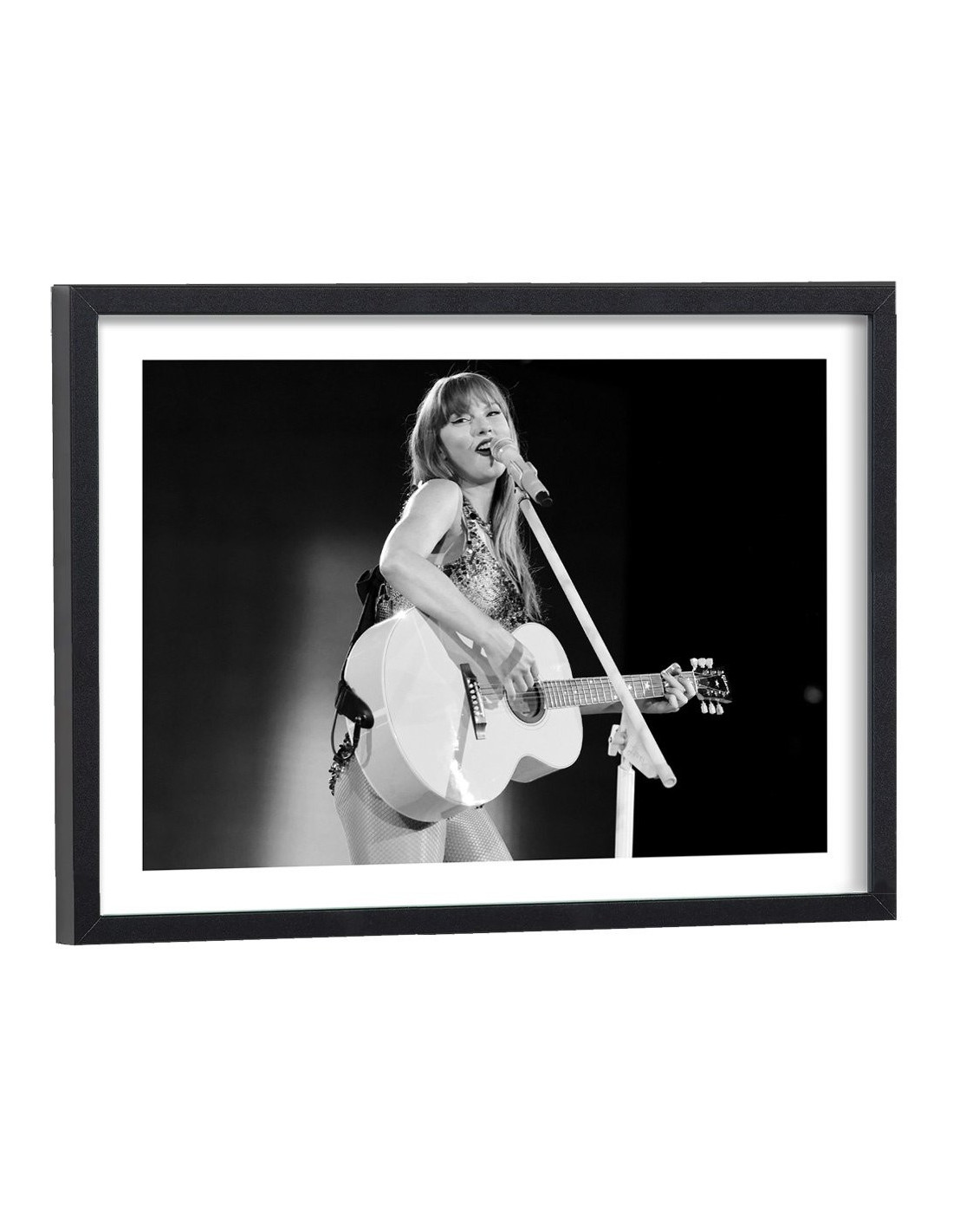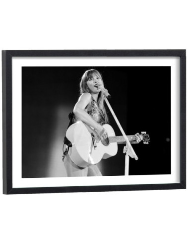 Affiche décoration de la chanteuse américaine Taylor Swift lors d'un concert. Affiche encadrée avec cadre en bois noir.
