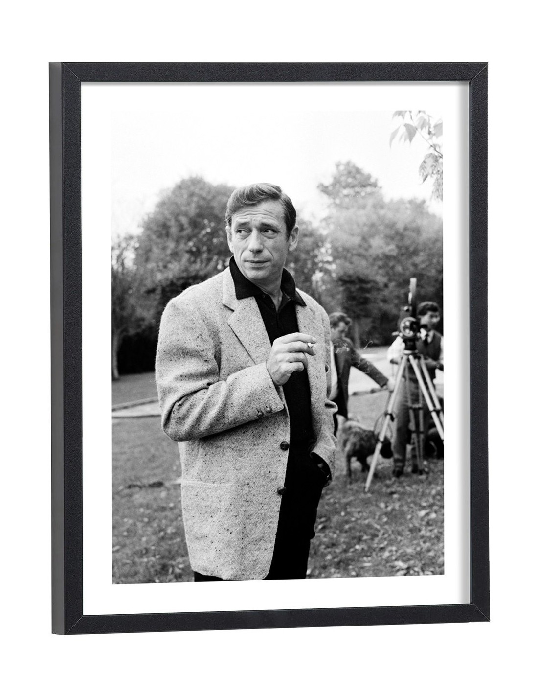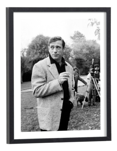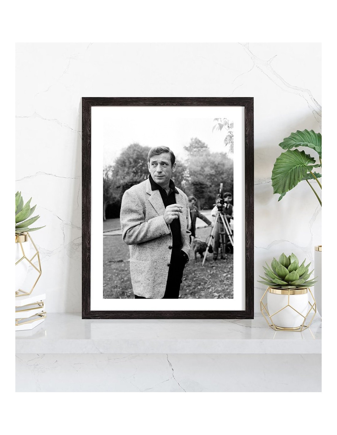 Affiche décoration du chanteur et acteur français Yves Montand. Affiche encadrée avec cadre en bois noir.