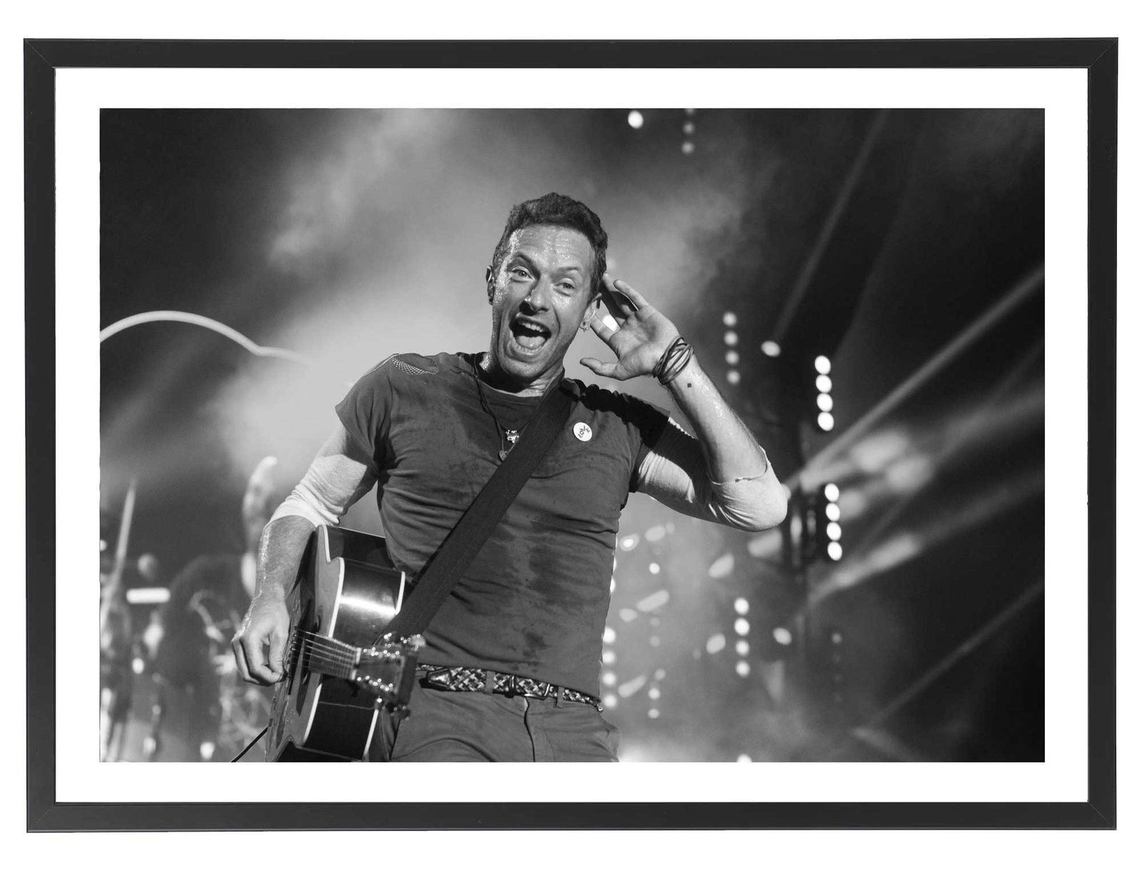 Tableau décoration noir et blanc de Coldplay en concert.