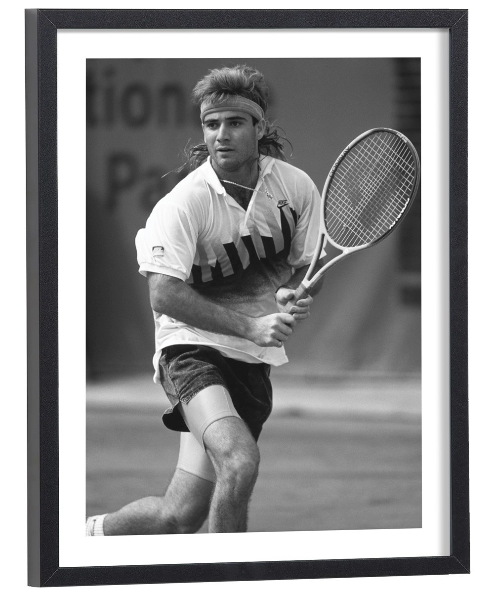 Revivez l'intensité du tennis légendaire avec André Agassi. Poster noir et blanc encadré, parfait pour créer une ambiance sportive dans votre bureau ou salle de sport. Format 40x30 cm, cadre bois noir inclus.