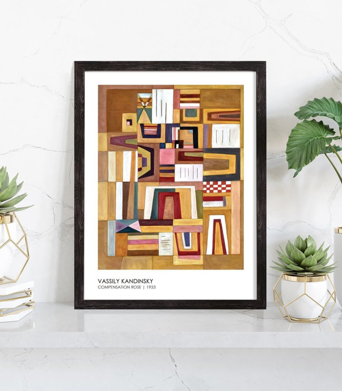 Reproduction du tableau de Vassily Kandinsky - Compensation rose. Ce tableau abstrait et très coloré a été réalisé en 1933.