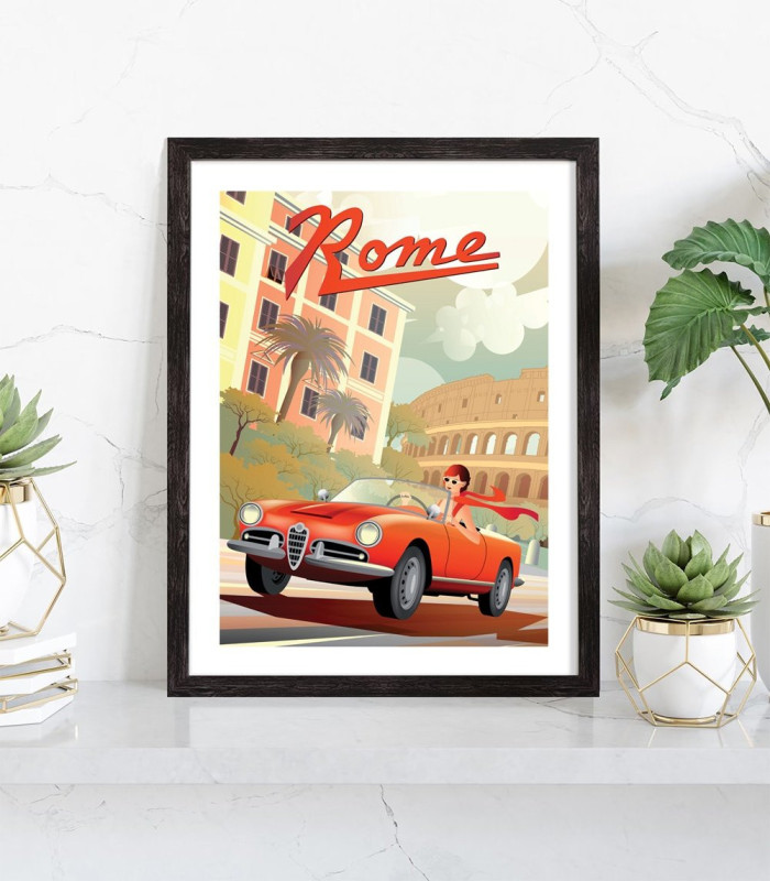 Affiche vintage de la ville de Rome, capitale de l'Italie. Cette affiche vintage de Rome est vendue avec l'encadrement.
