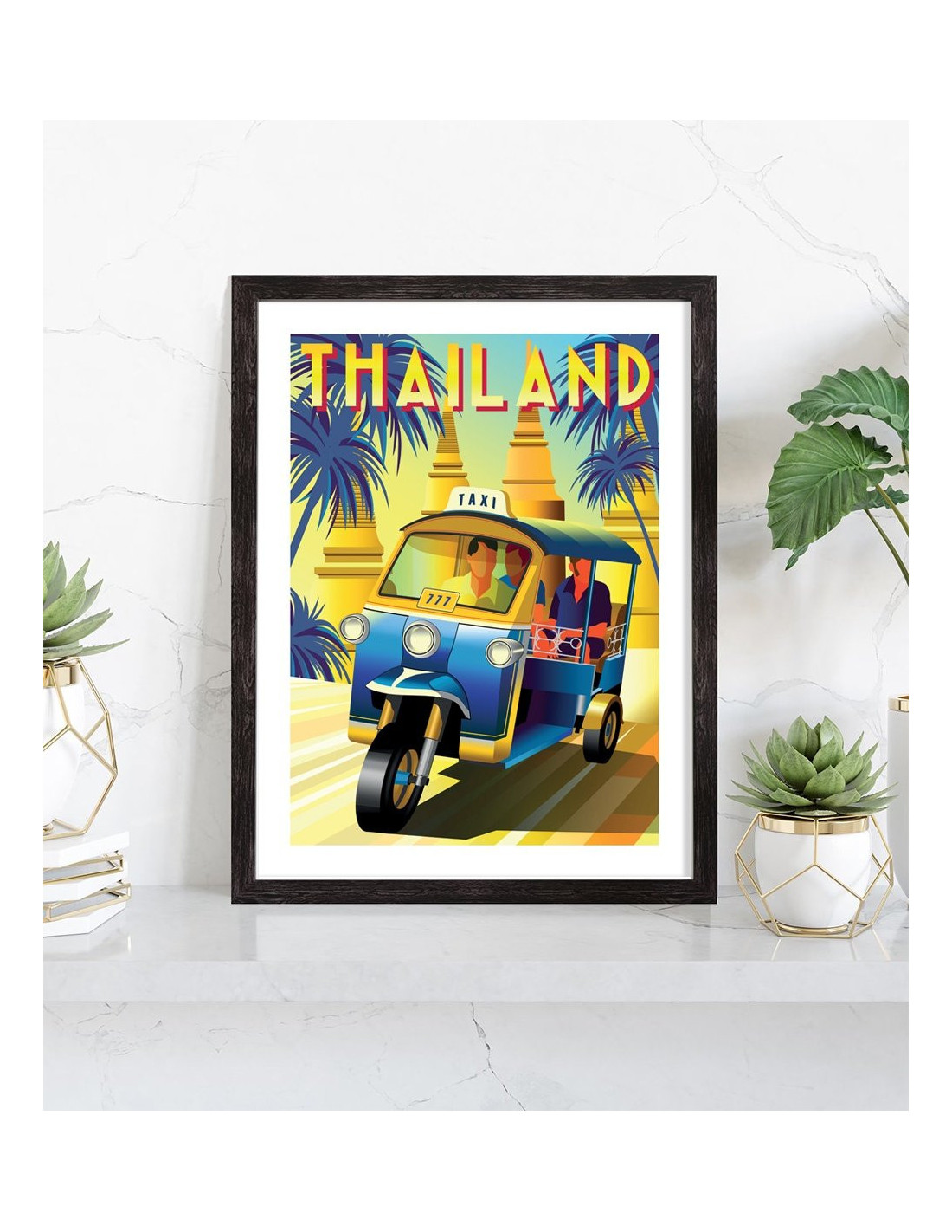 Affiche vintage de la Thaïlande. Cette affiche vintage de la Thaïlande est vendue avec l'encadrement.