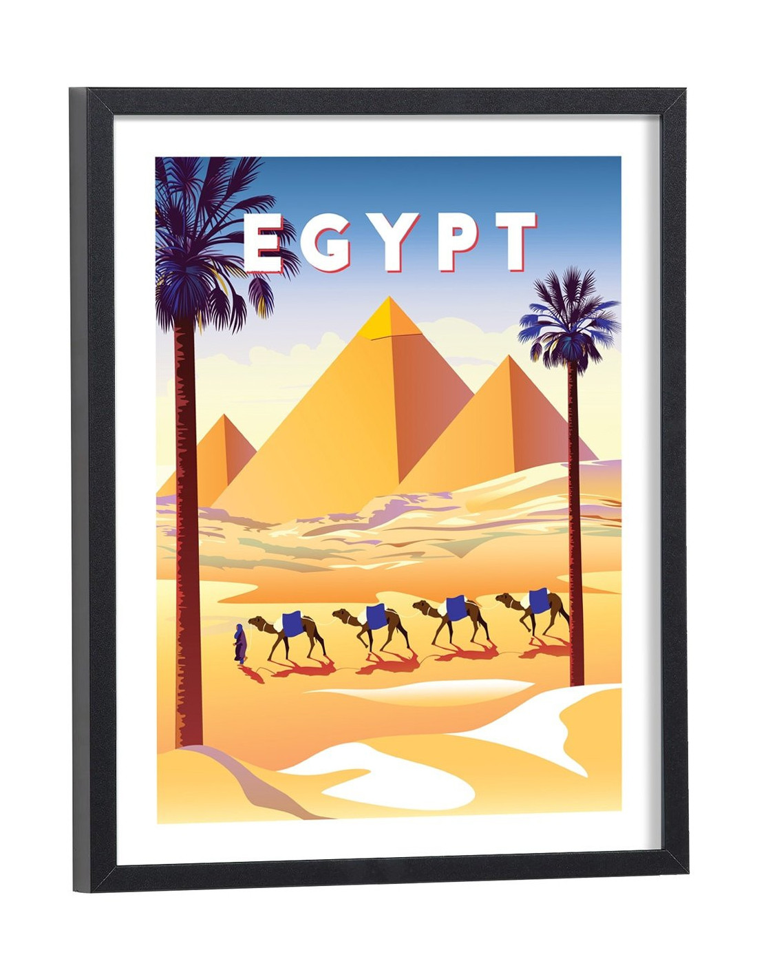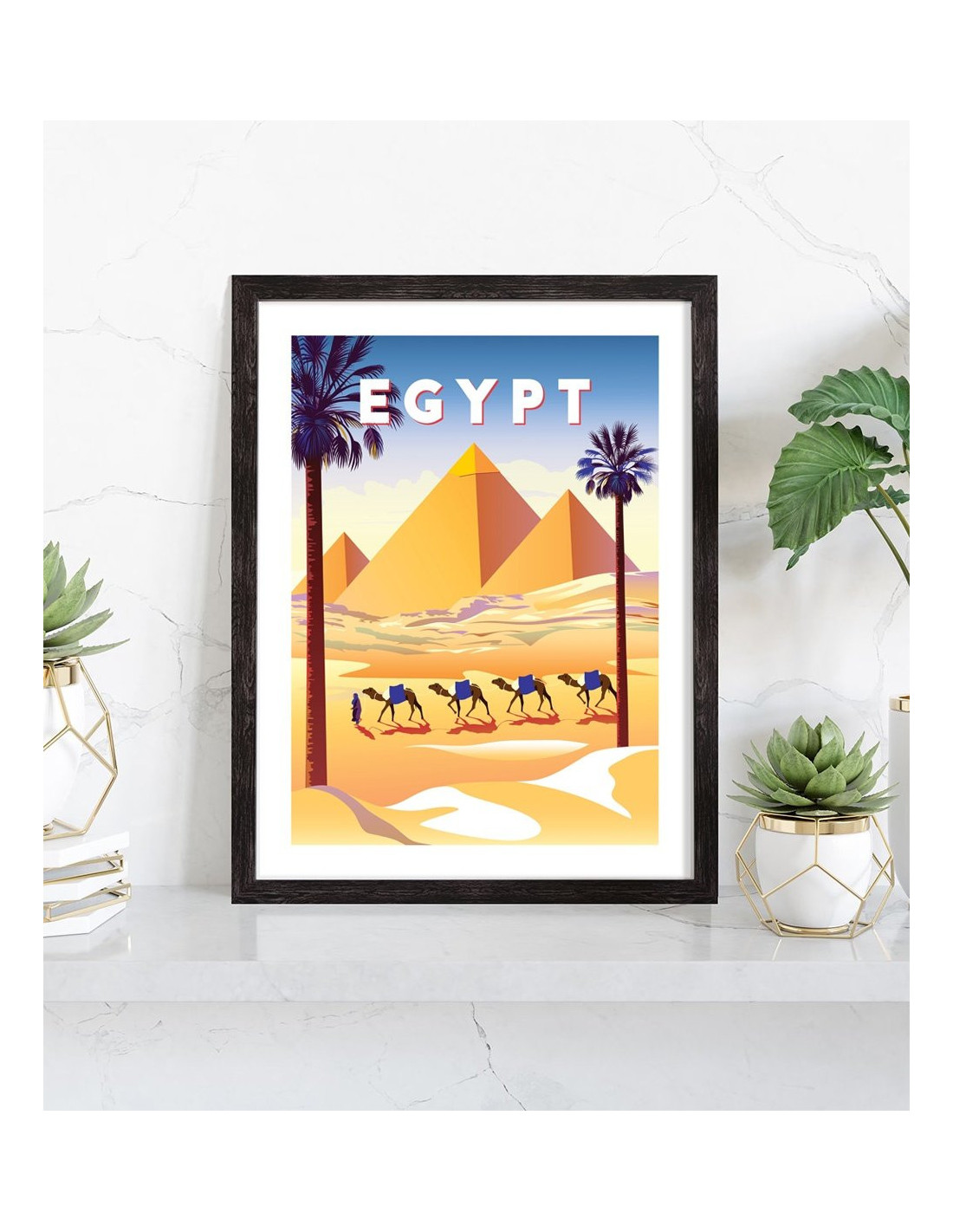 Affiche vintage de l'Egypte avec une vue sur les pyramides. Cette affiche vintage de l'Egypte est vendue avec l'encadrement.