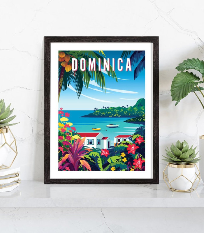 Affiche vintage de la République Dominicaine. Cette affiche vintage colorée de la République Dominicaine est vendue avec l'encadrement.