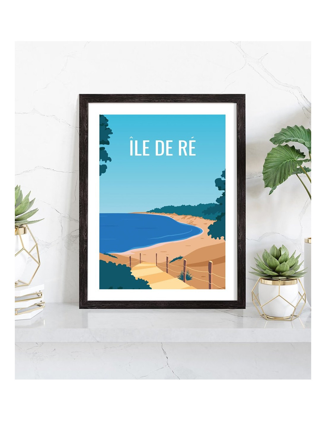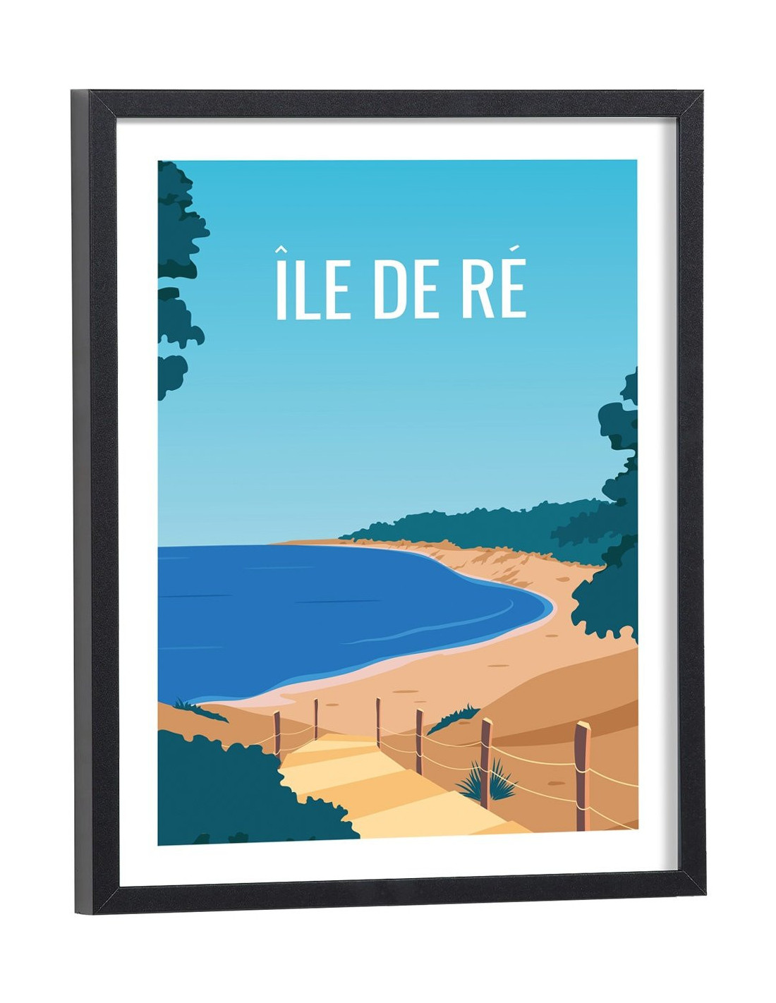 Affiche vintage de l'Île de Ré avec un beau paysage. Cette affiche vintage de l'Île de Ré est vendue avec l'encadrement.