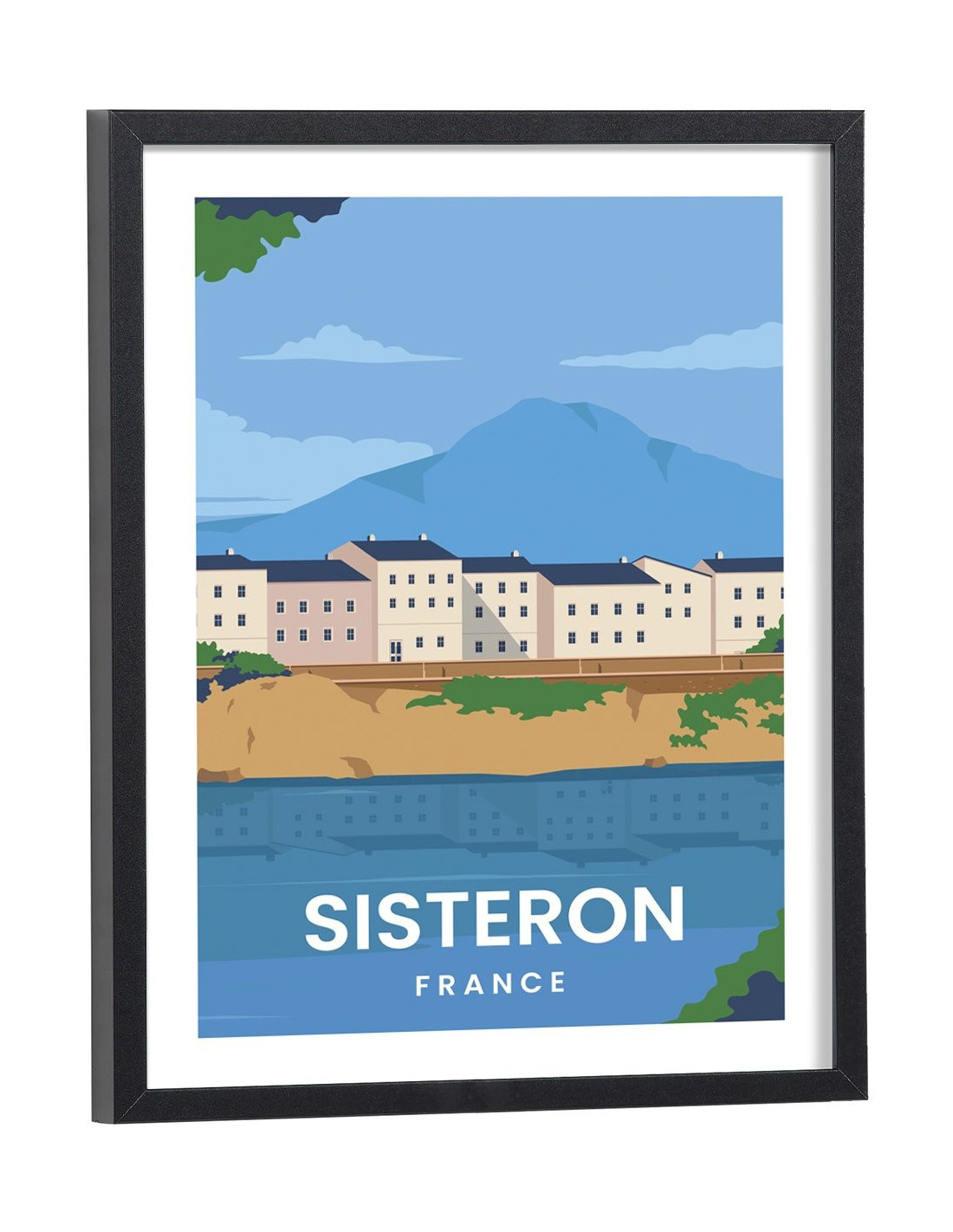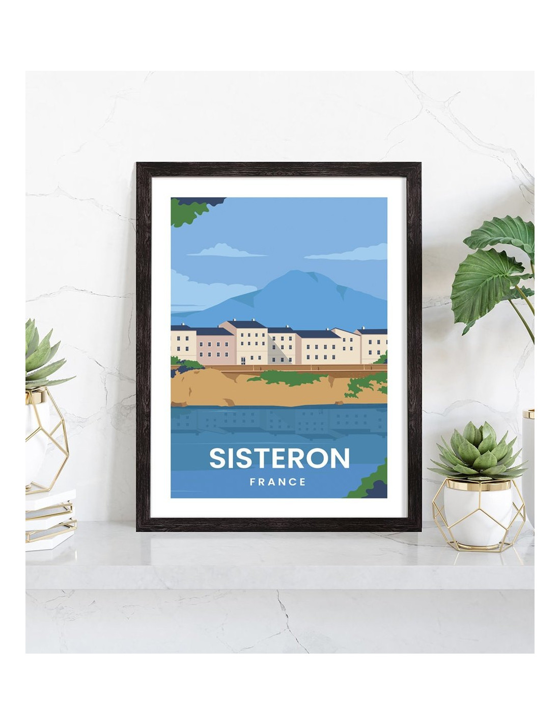 Affiche vintage de la ville de Sisteron située dans le département des Alpes-de-Haute-Provence. Cette affiche vintage de Sisteron est vendue avec l'encadrement.