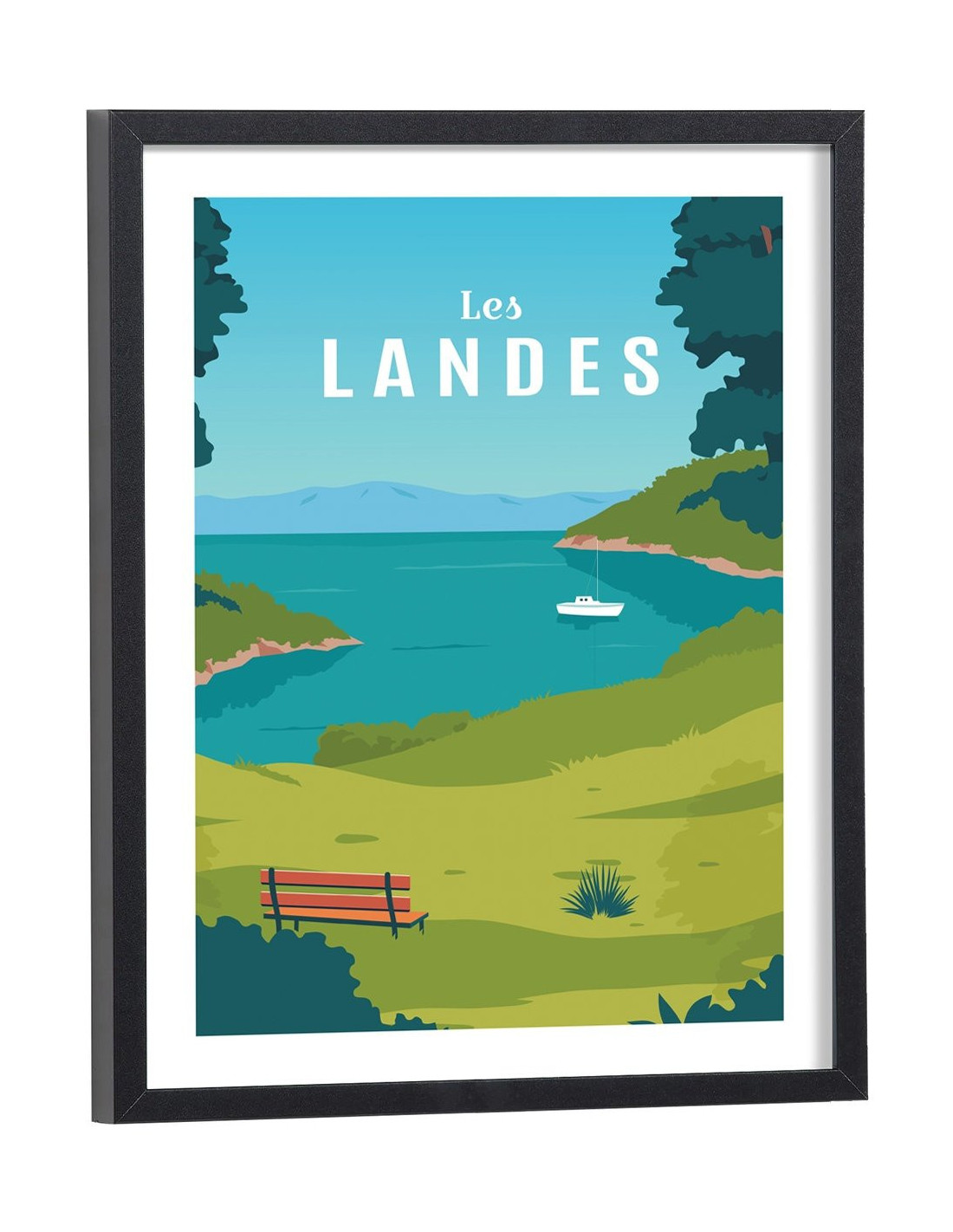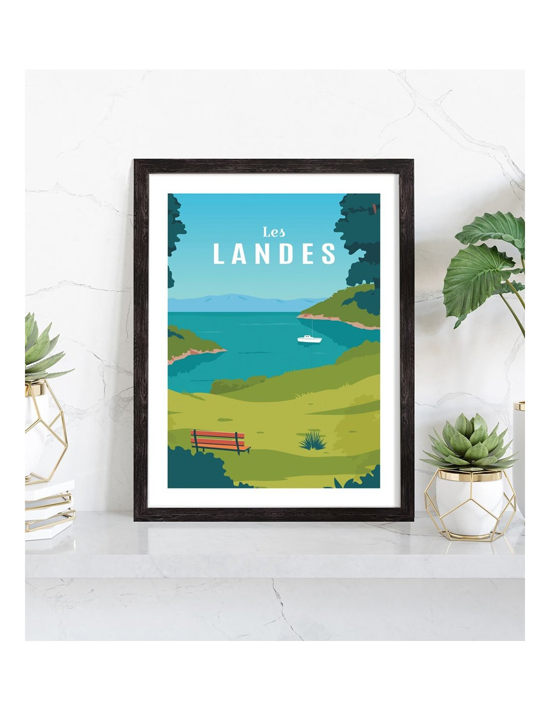 Affiche vintage d'un paysage du département des Landes. Cette affiche vintage et colorée des Landes est vendue avec l'encadrement.