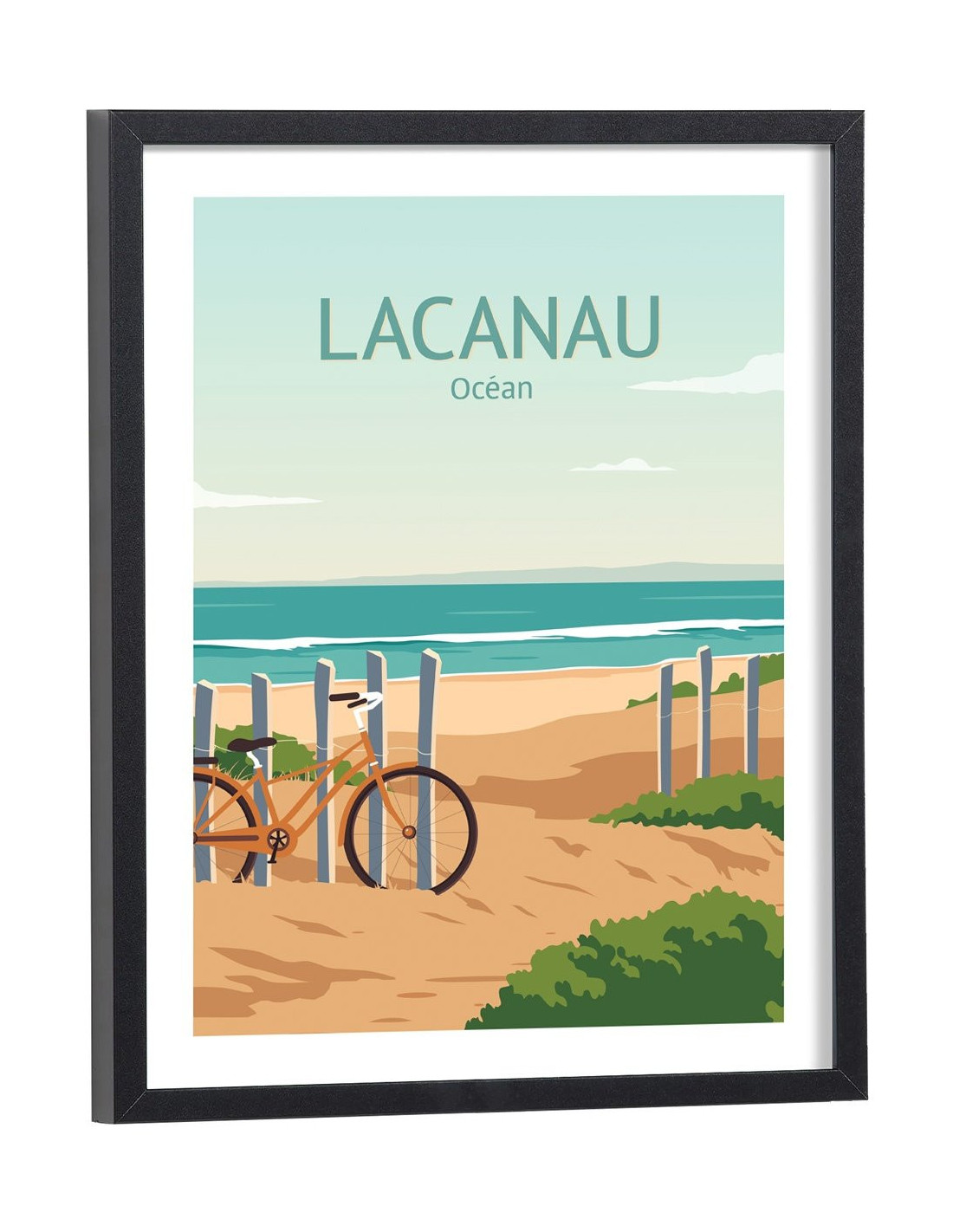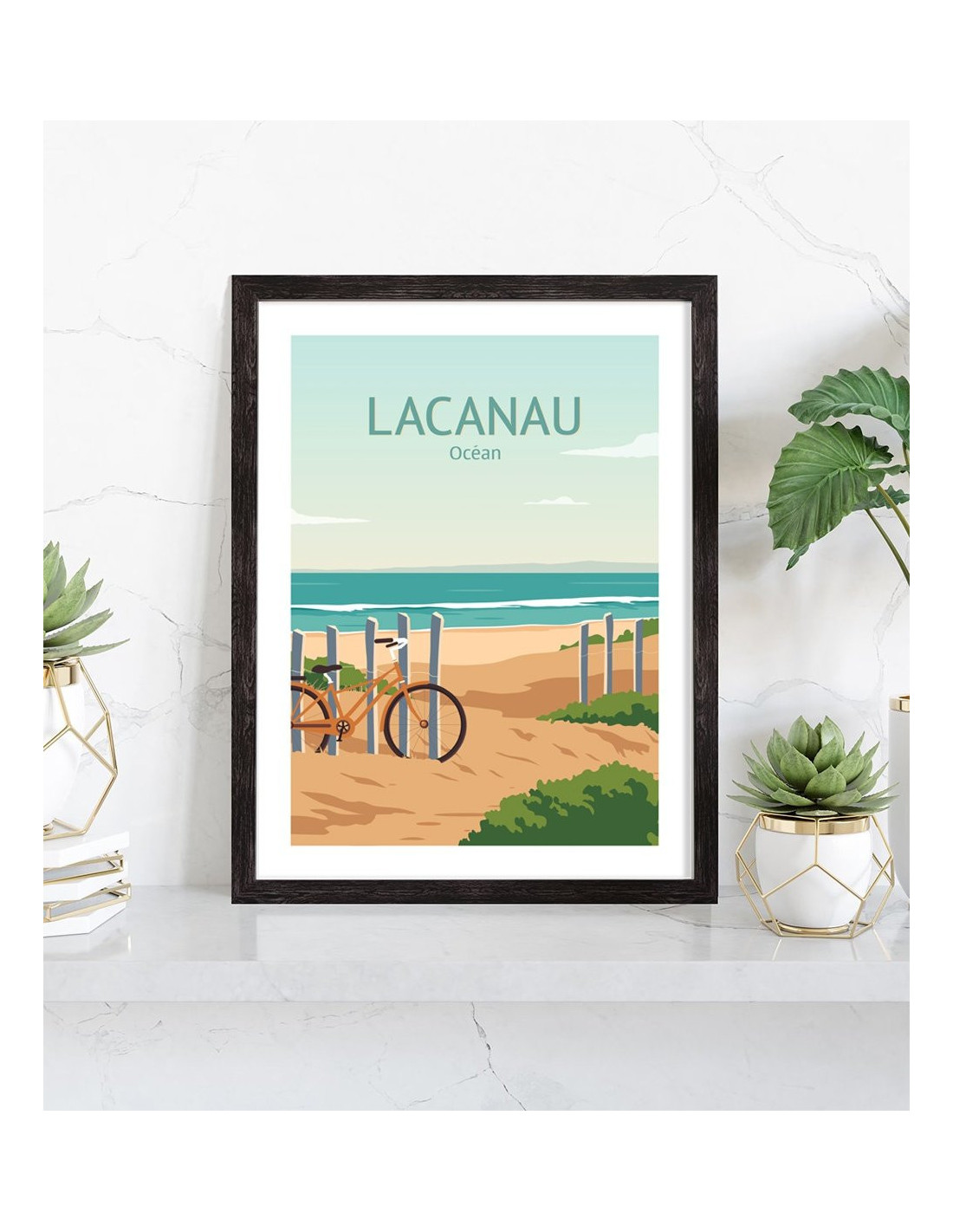 Affiche vintage de la ville de Lacanau, en Gironde. Cette affiche vintage de Lacanau est vendue avec l'encadrement.