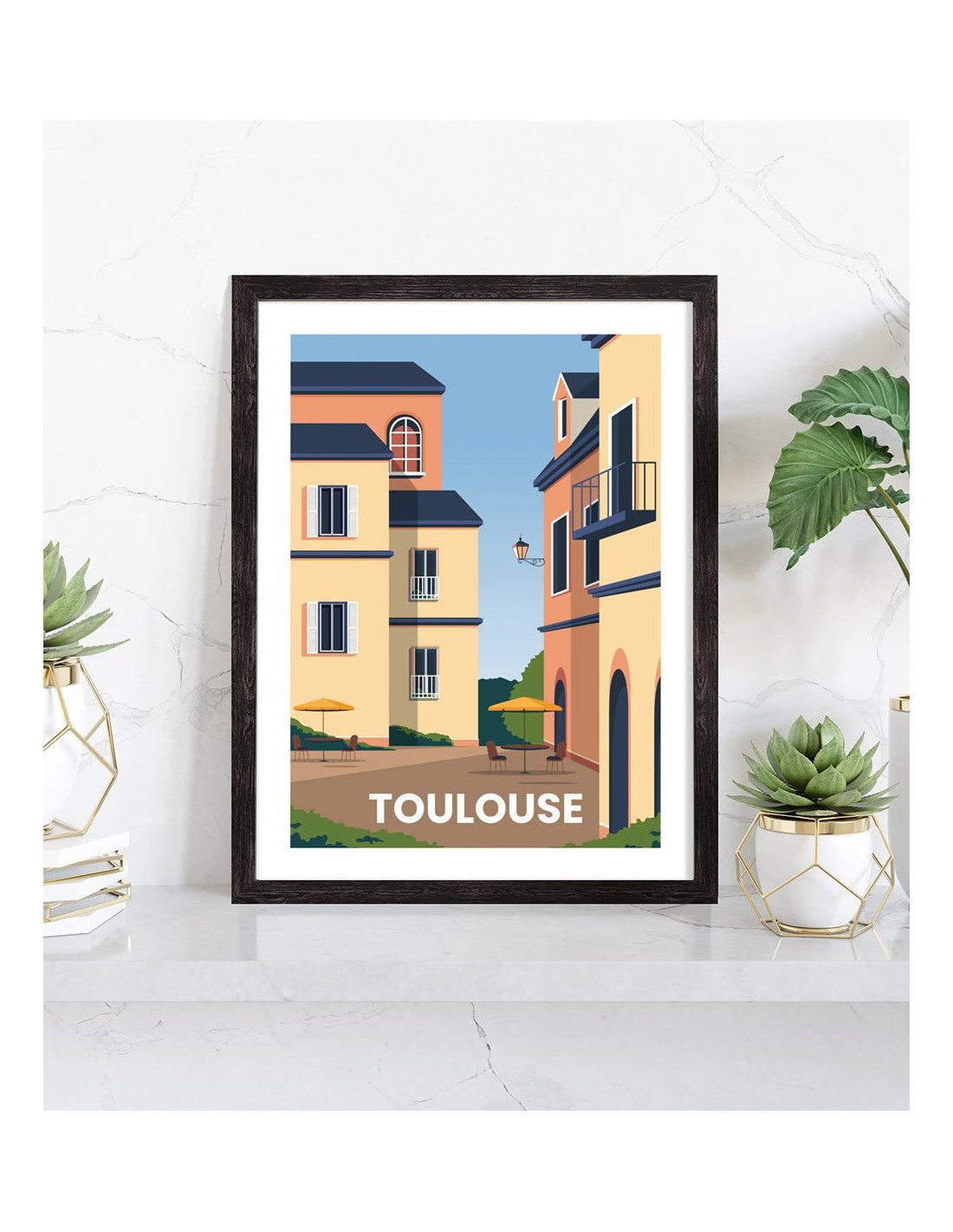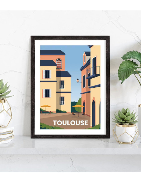 Affiche vintage de la ville de Toulouse. Cette affiche vintage de Toulouse est vendue avec l'encadrement.