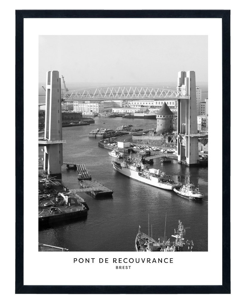 Tableau décoration noir et blanc de la ville de Brest. Le pont de Recouvrance dominanant l'arsenal et le port militaire.