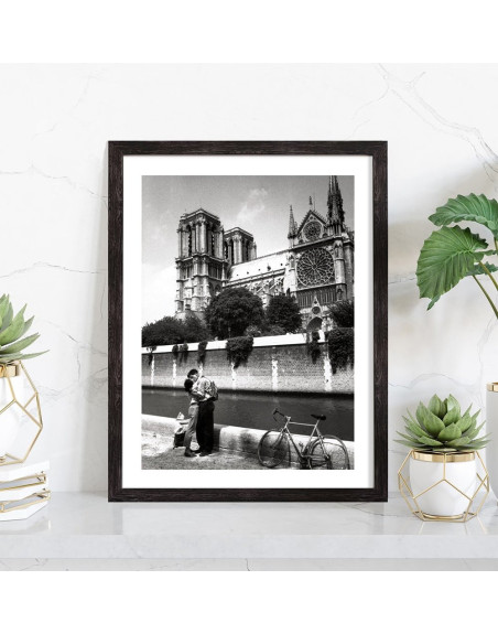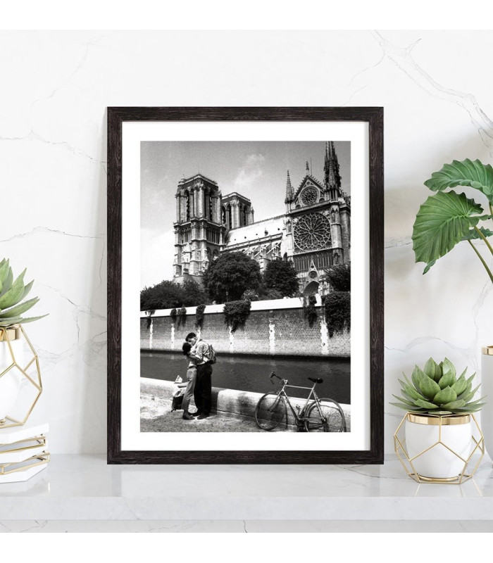 Tableau décoration vintage d'un jeune couple enlacé à Notre Dame de Paris.