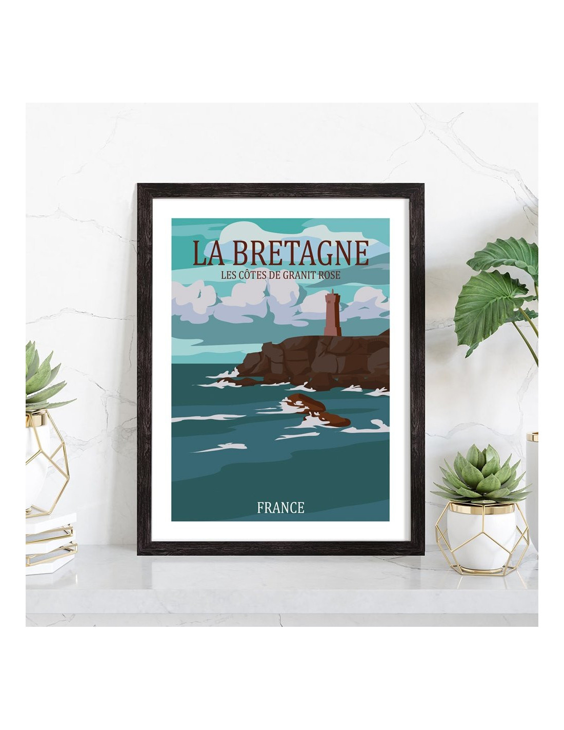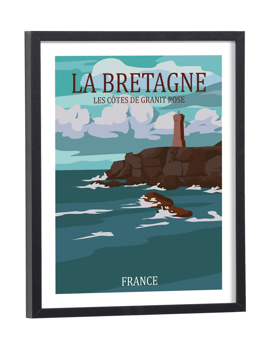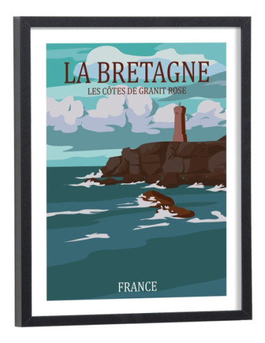 Tableau décoration vintage de la Bretagne. Découvrez cette magnifique affiche de la côte de granit roses, située dans le nord de la Bretagne. Craquez pour cette affiche vintage de la Bretagne.
