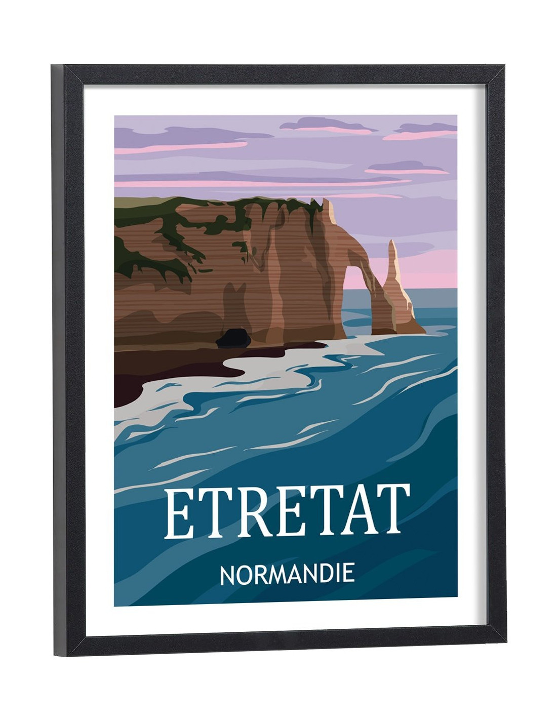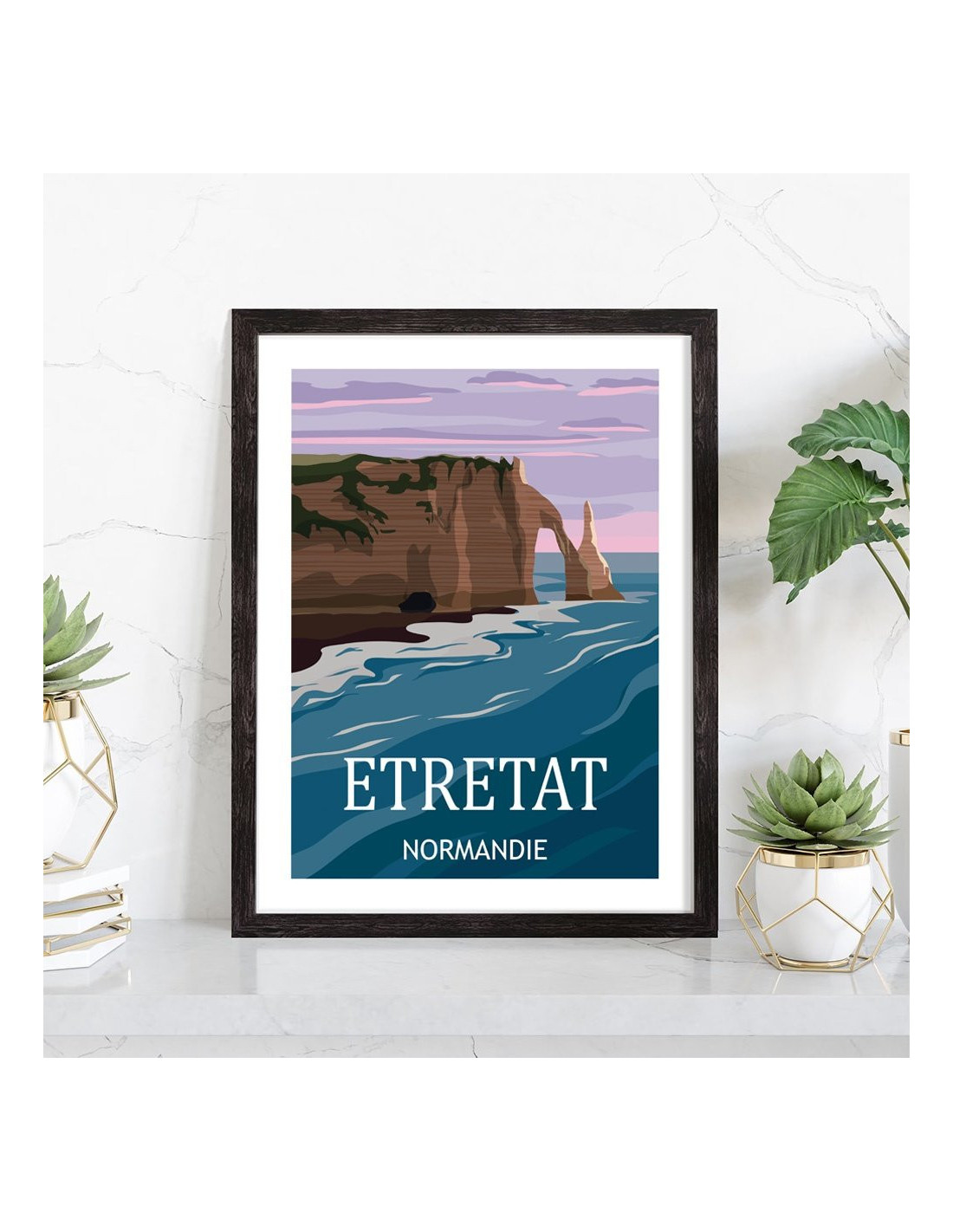 Tableau de décoration d'intérieur vintage des falaises d'Etretat en Normandie. L'affiche d'Etretat vintage sera un vrai plus pour la décoration de votre maison.