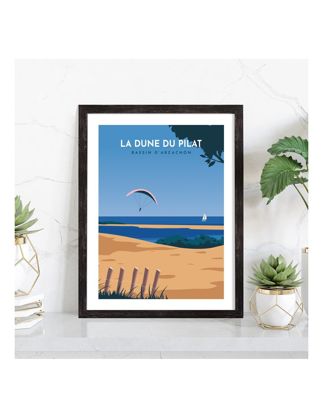 Tableau décoration vintage en couleur de la dune du Pilat, bassin d'Arcachon.