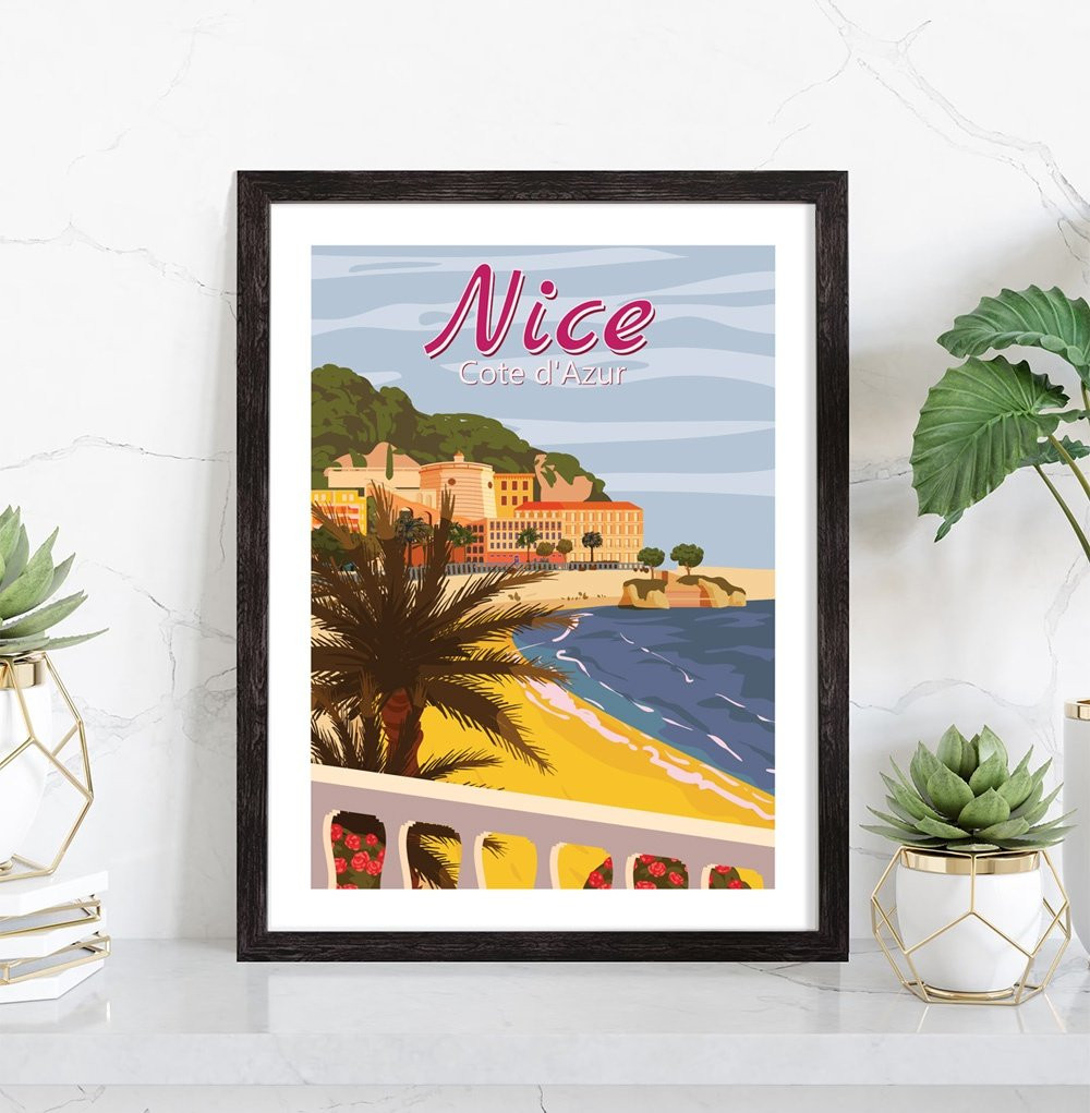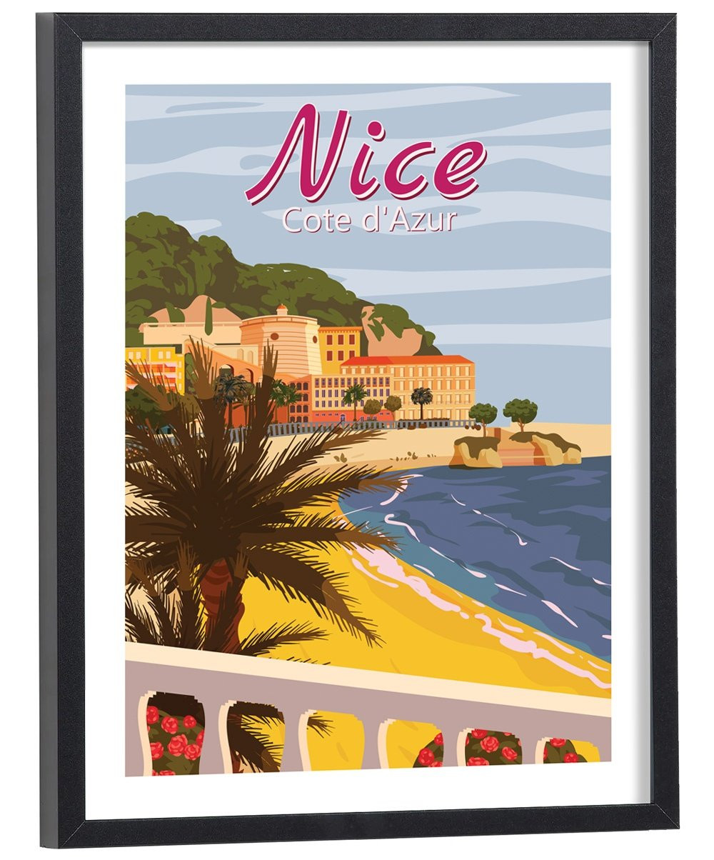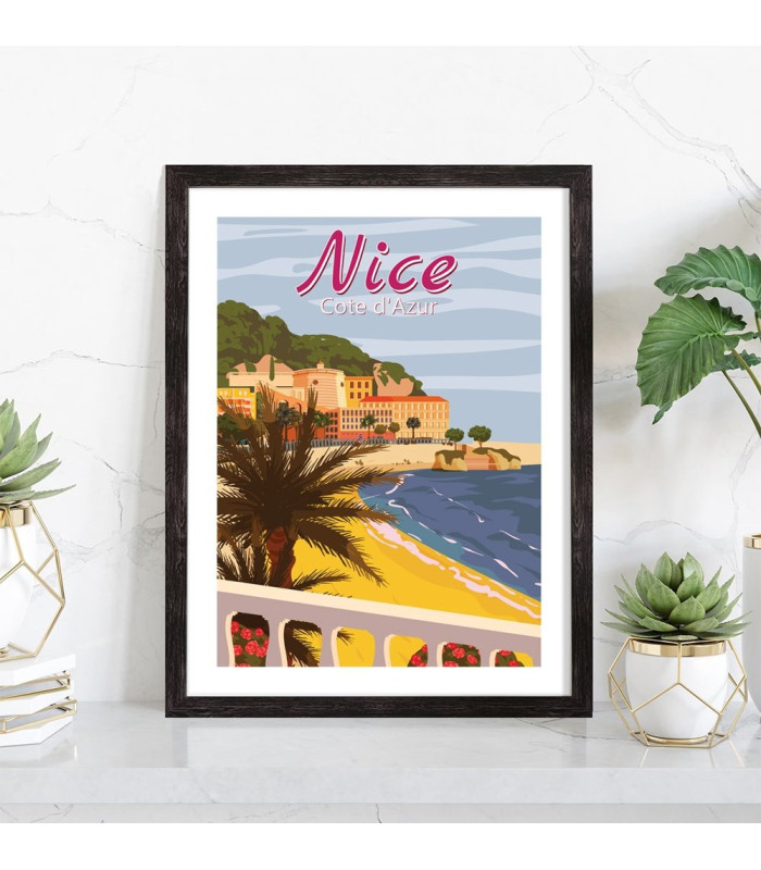 Tableau de décoration d'intérieur de la ville de Nice vintage en couleur. L'affiche de Nice Vintage représente les magnifiques paysages de la plus belle ville de la côte d'azur.