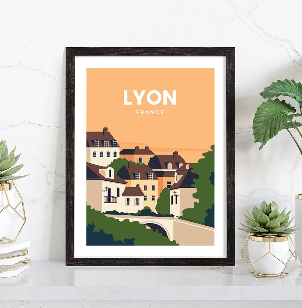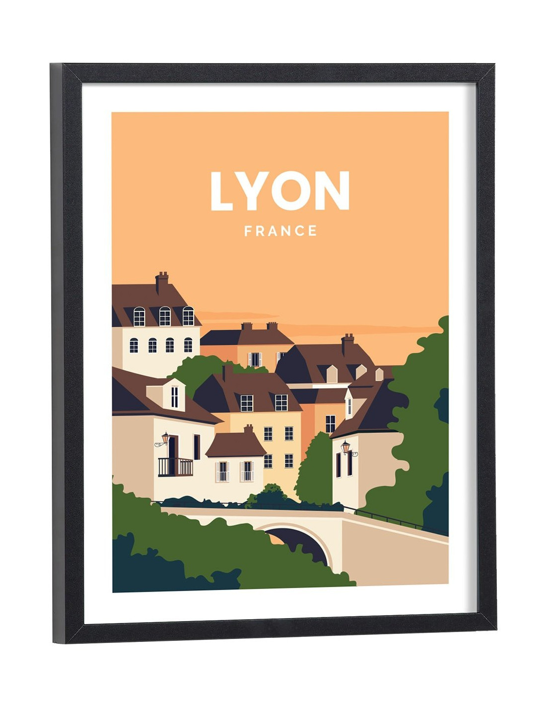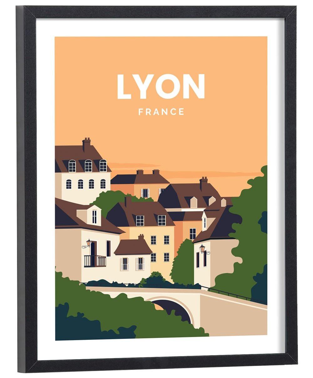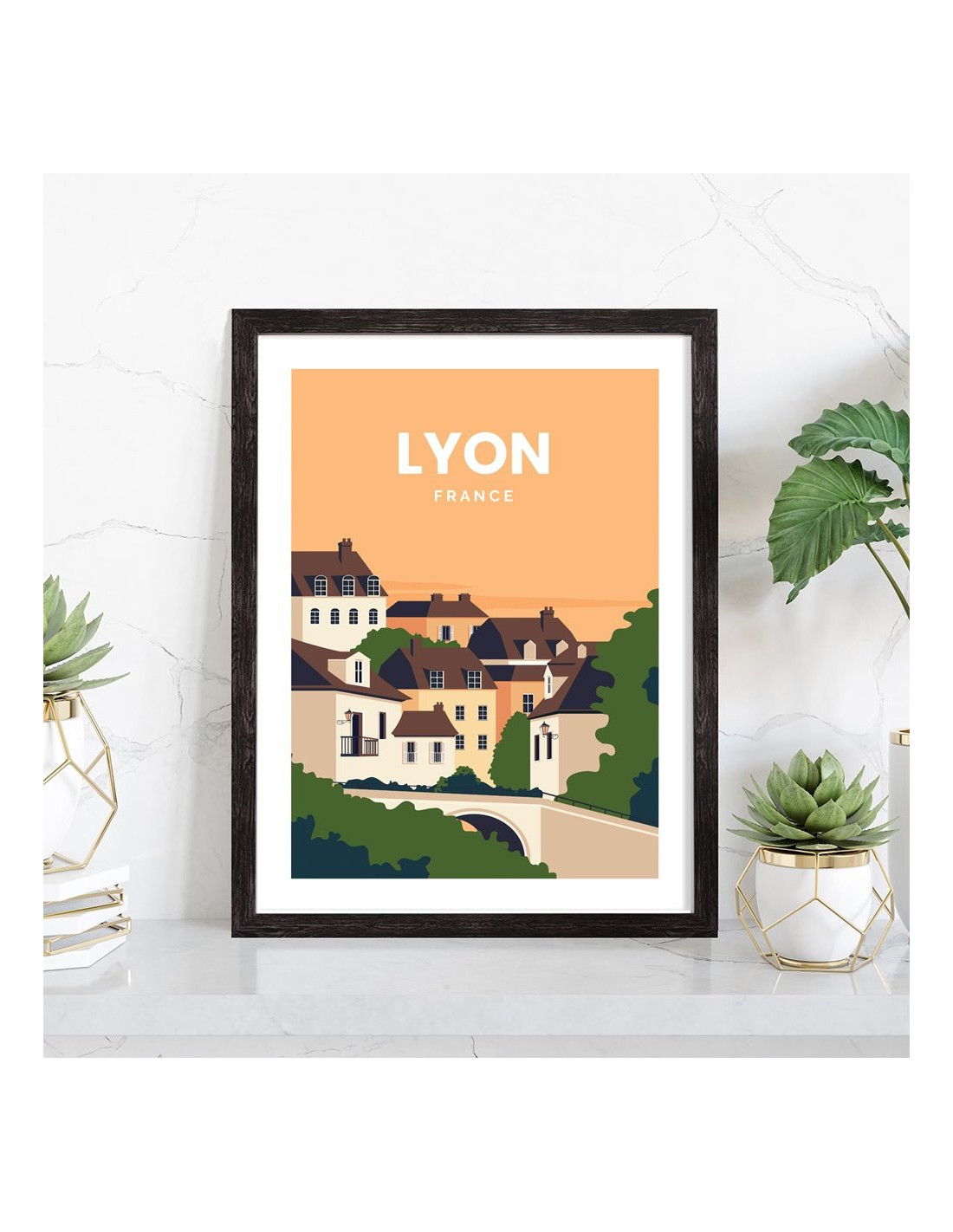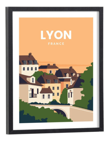 Tableau décoration vintage de la ville de Lyon. Cette affiche vintage de Lyon est vendue avec l'encadrement.