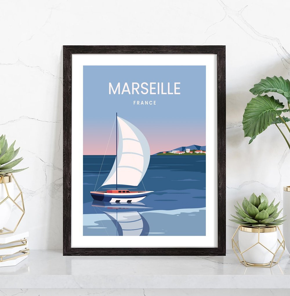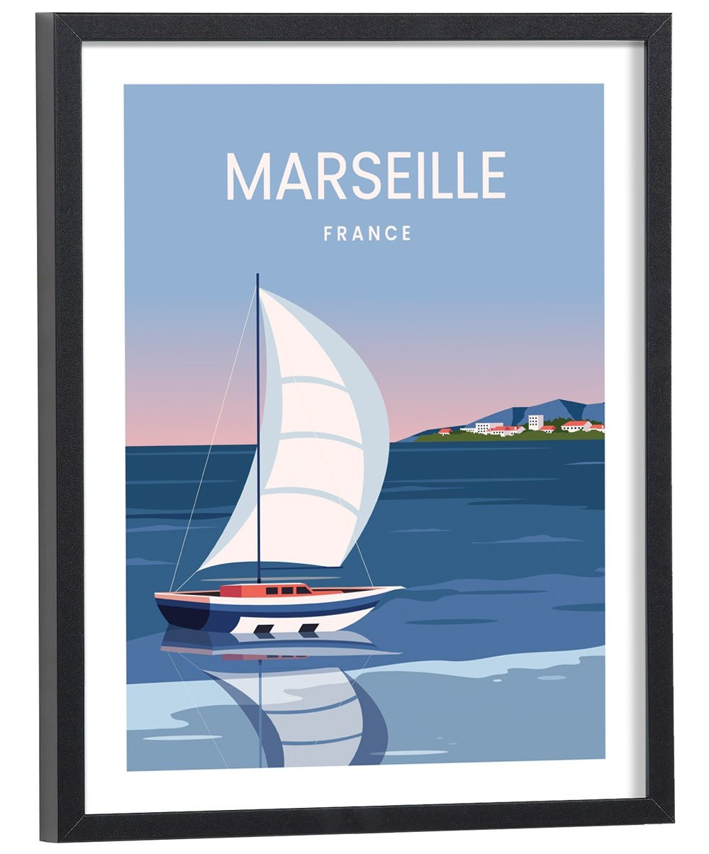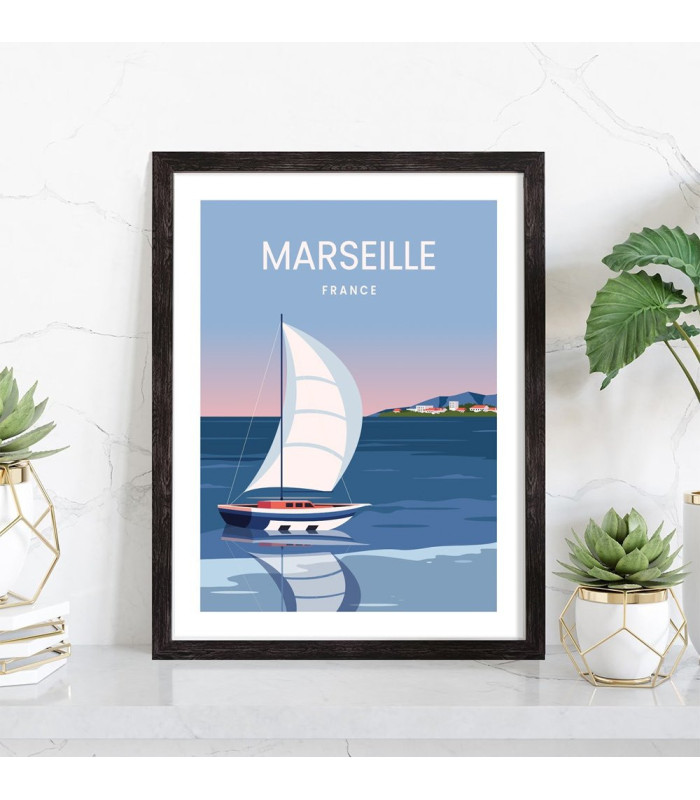 Tableau décoration vintage de la ville de Marseille. Cette affiche vintage de Marseille est vendue avec l'encadrement.