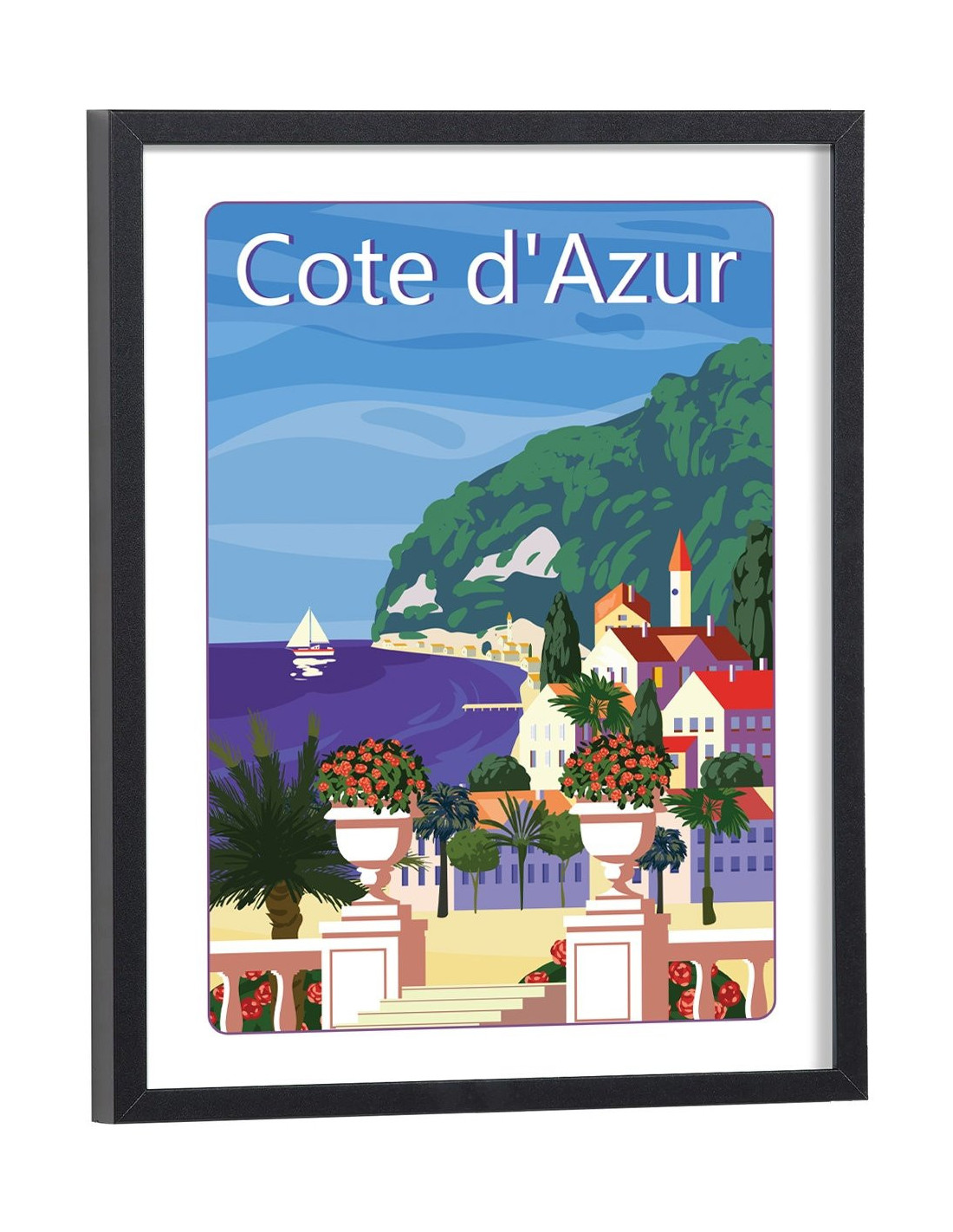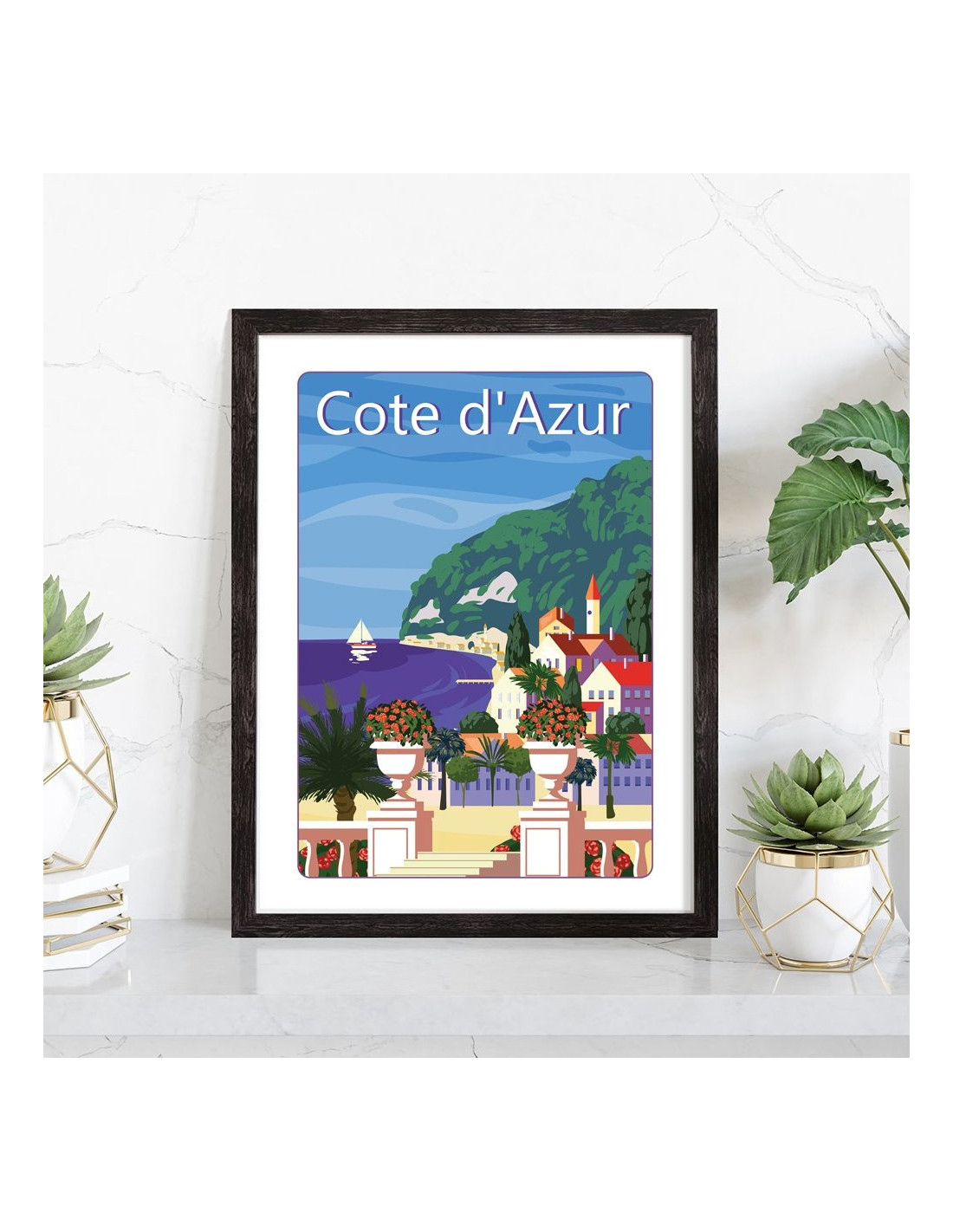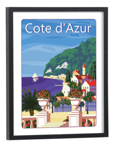 Tableau décoration vintage de la Côte d'Azur. Cette affiche vintage de la Côte d'Azur est vendue avec l'encadrement.